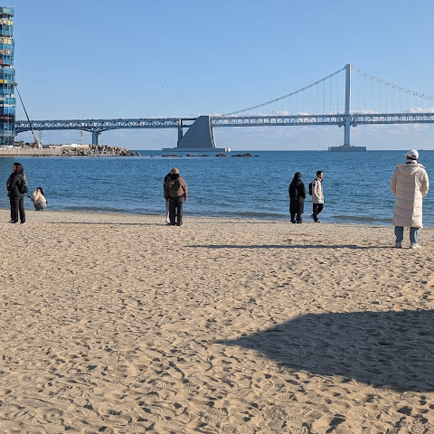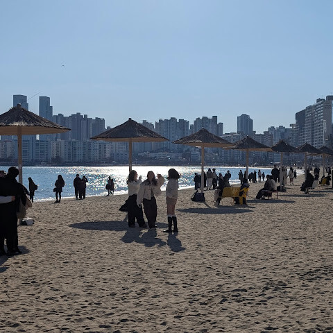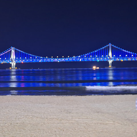 밤에도 화려하고 광안대교가 불빛이 다양해서 멋지구요 낮에는 바다가 푸르고 파도가 굉장합니다. 모래사장위에 파라솔과 의자가 있어 앉아서 쉬기도 좋아요. 새해맞이 불빛터널고 멋지구요. 모래사장도 크고 넓어요. 여름엔 서핑하기도 물놀이하기도 좋을거 같아요!^^ 주변에 카페랑 맛집이랑 호텔도 많습니다^^