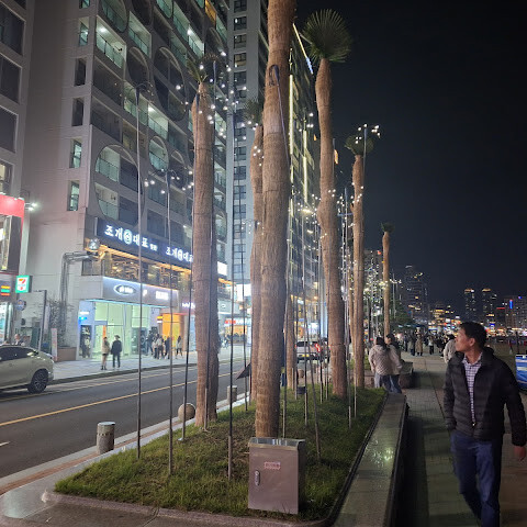 낮과 밤, 이곳은 마치 다른 곳처럼 느껴집니다. 저녁에는 시끄럽고 붐빕니다. 화려한 조명과 음악이 펼쳐지고, 토요일에는 드론 쇼를 기대하며 더욱 활기가 넘칩니다. 드론 쇼는 정말 장관이니, 꼭 방문하여 다양한 장면을 경험해 보세요. 아름다운 화단도 있고, 다른 지역으로 가는 보행자 전용 도로도 있습니다. 샤워실과 화장실도 이용 가능합니다. 기반 시설도 잘 갖춰져 있습니다. 해변가와 골목길 모두 카페가 많습니다. 저녁에는 교통 체증이 잦습니다.