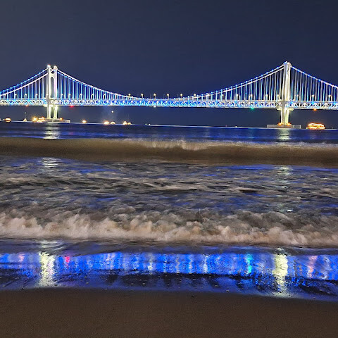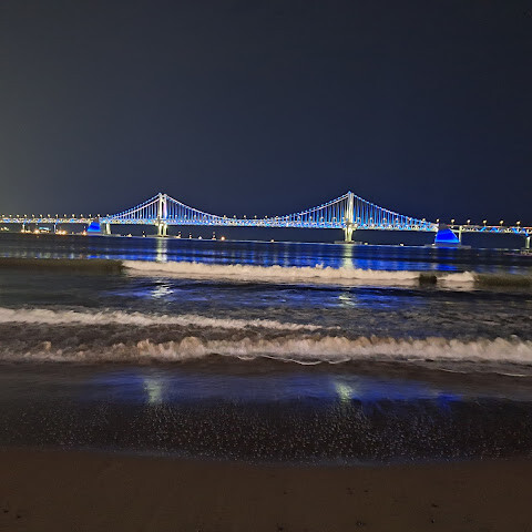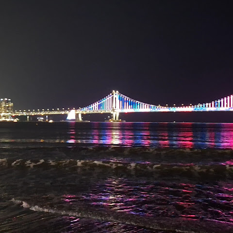 17박 동안의 한국 여행 중 부산은 가장 마음에 드는 도시였고, 광안리 해수욕장은 그 이유 중 하나였습니다.