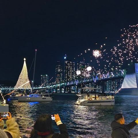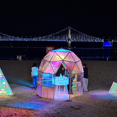 토요일 광안리 산책나갔다가 드론쇼를 구경하고 모래사장을 거닐면서 산책했는데 참 아름답네요. 광안대교 설치 이후, 다양한 행사등 볼거리가 날로 늘어가는 것 같아요. 1월15일까지 별빛우산 무료 체험하는게 있는데 넘 예뻐요. 큐알찍고, 신분증 맡기고, 20분간 백사장주변 들고 다니면서 사진찍으면 넘 잘나와요. 아이디어 좋은 것 같아요. 크리스마스트리 모양을 한 요트도 다니고 크리스마스기분 나요~♡
