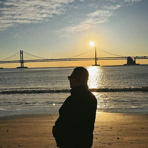광안리해수욕장을 잠시 들렀다가 우연히 마주한 광안대교의 일몰은 그야말로 숨이 멎을 만큼 황홀한 순간이었습니다. 붉게 물든 하늘 아래로 해가 천천히 떨어지며 광안대교의 실루엣을 감싸 안는 장면은, 마치 한 폭의 유화처럼 눈앞에 펼쳐졌습니다. 바다 위로 번지는 주황빛과 붉은 노을의 그라데이션은 겨울 바람 속에서도 따뜻함을 전해주었고, 물결 위에 반사된 빛은 잔잔하게 흔들리며 황금빛으로 반짝였습니다.