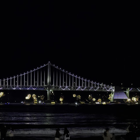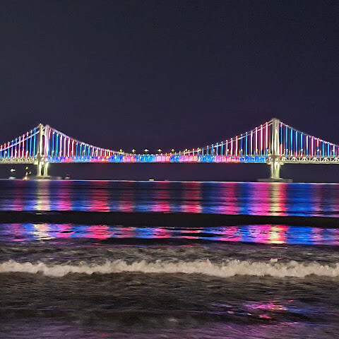 토요일 밤 드론 라이트 쇼를 보기 위해 바닷가 콘도 아파트에서 4박을 묵었습니다. 정말 환상적이었습니다. 매주 토요일 밤 두 번씩 쇼가 펼쳐집니다. 해변과 다리가 보이는 콘도도 멋지지만, 수천 명의 사람들과 함께 해변에 서 있는 것만으로도 후회하지 않을 것입니다. 토요일에 방문하기 어렵더라도 광안대교의 야경(그리고 낮의 풍경)과 밤마다 펼쳐지는 불꽃놀이는 꼭 한번 묵어볼 만한 가치가 있습니다.