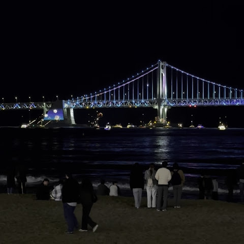 해변은 정말 아름답고, 모래는 정말 부드러웠어요. 밤에 광안대교를 바라보며 드론 쇼를 보는 건 정말 환상적이었어요.