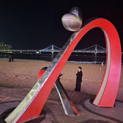 세모를 맞아 드론을 2026대나 띄우고 조형물들이 많아 사진 찍기 좋고 광안대교가 있는 밤바다와 파도소리가 일품입니다