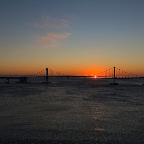 다리 위를 흐르는 차량들의 불빛은 노을과 섞여 하나의 리듬을 만들고, 케이블 사이로 번지는 빛은 바다 위에 길게 반사되어 또 다른 풍경을 완성했습니다. 바다는 낮의 색을 모두 내려놓은 채 노을을 고스란히 받아 안고 있었고, 도시는 실루엣으로 물러나며 저녁의 주인공을 하늘에 내어주었습니다. 그 장면 앞에서 시간은 잠시 느려졌고, 마음속에 쌓였던 긴장도 자연스럽게
