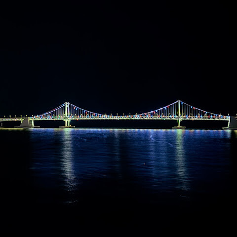다리에 불이 켜지면 정말 아름다워요. 이 장엄한 다리에 감동했어요.