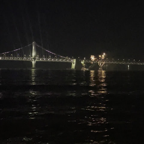 멀리 요트에서 쏘는 불꽃놀이도 덤으로 볼 수 있었고요.