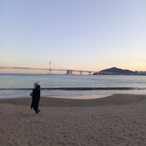 광안리 해변은 마치 부산에서 보내는 조용한 사랑 편지 같습니다. 고운 모래와 잔잔한 공기, 그리고 그곳에 도착하는 순간 시간이 멈춘 듯한 느낌을 줍니다. 이곳을 진정으로 마법처럼 만드는 것은 바로 광안대교입니다. 언제나 생동감 넘치고, 언제나 빛나는 광안대교는 새벽녘 차가운 겨울 공기에 감싸인 채 파스텔톤 하늘 아래 조용히 서 있습니다. 낮에는 바다 위로 우아하게 뻗어 있는 다리가 강인함과 고요함을 동시에 보여줍니다. 해가 지면 하늘은 따뜻하고 시적으로 물들고, 다리는 그리움의 실루엣처럼 남습니다. 밤이 되면 불빛이 켜지고, 물 위로 반짝이는 불빛들은 영원히 사라지지 않을 약속처럼 빛납니다.