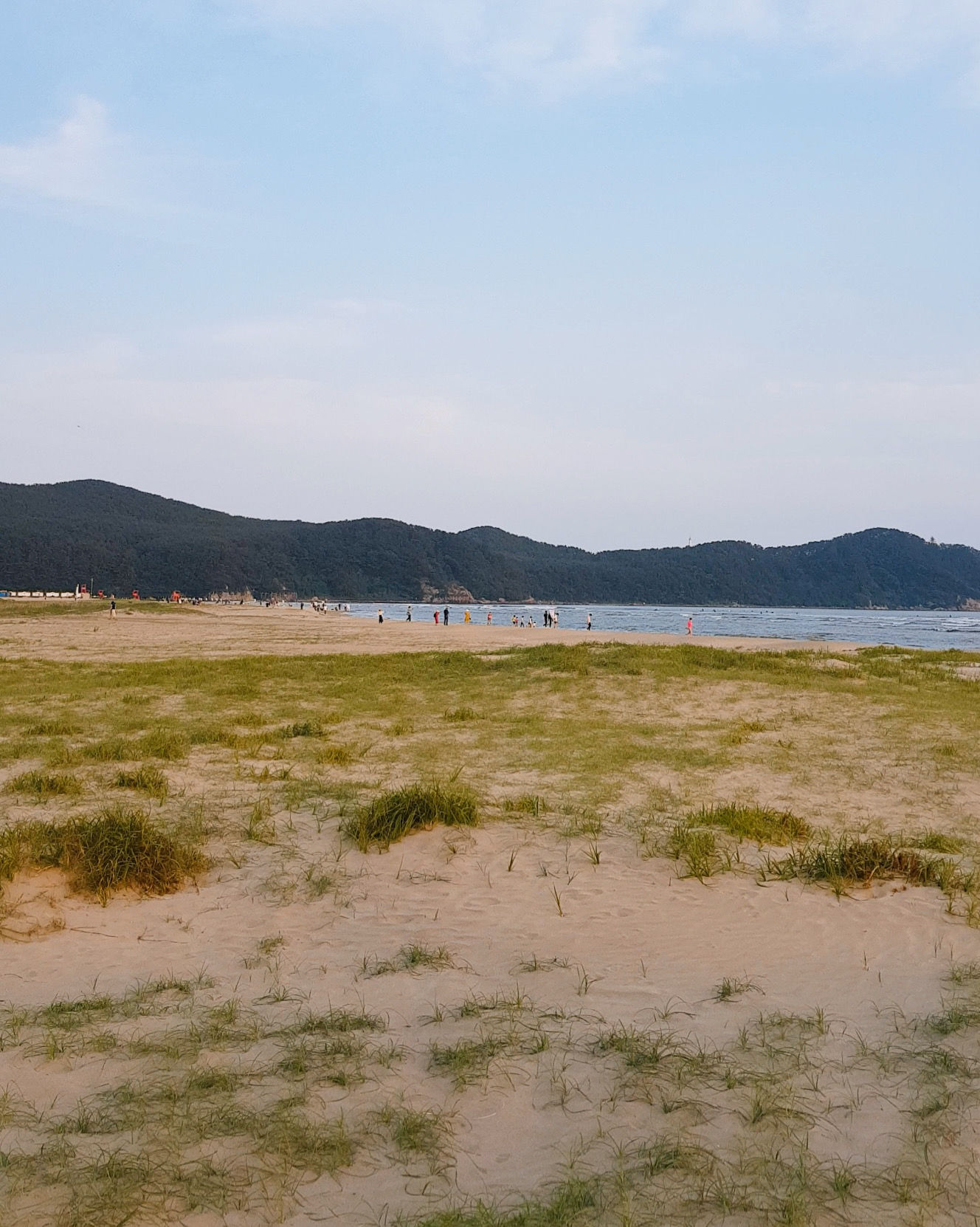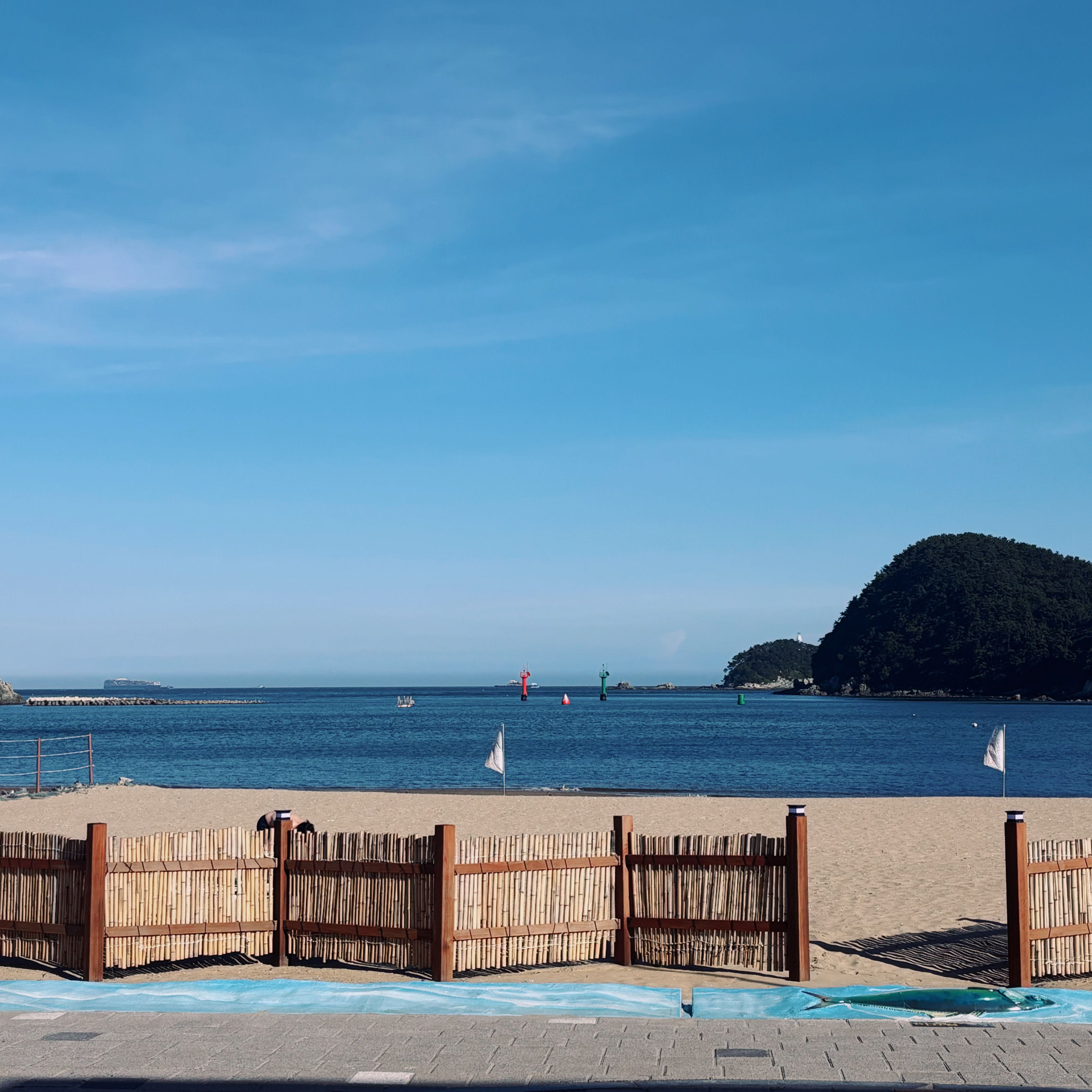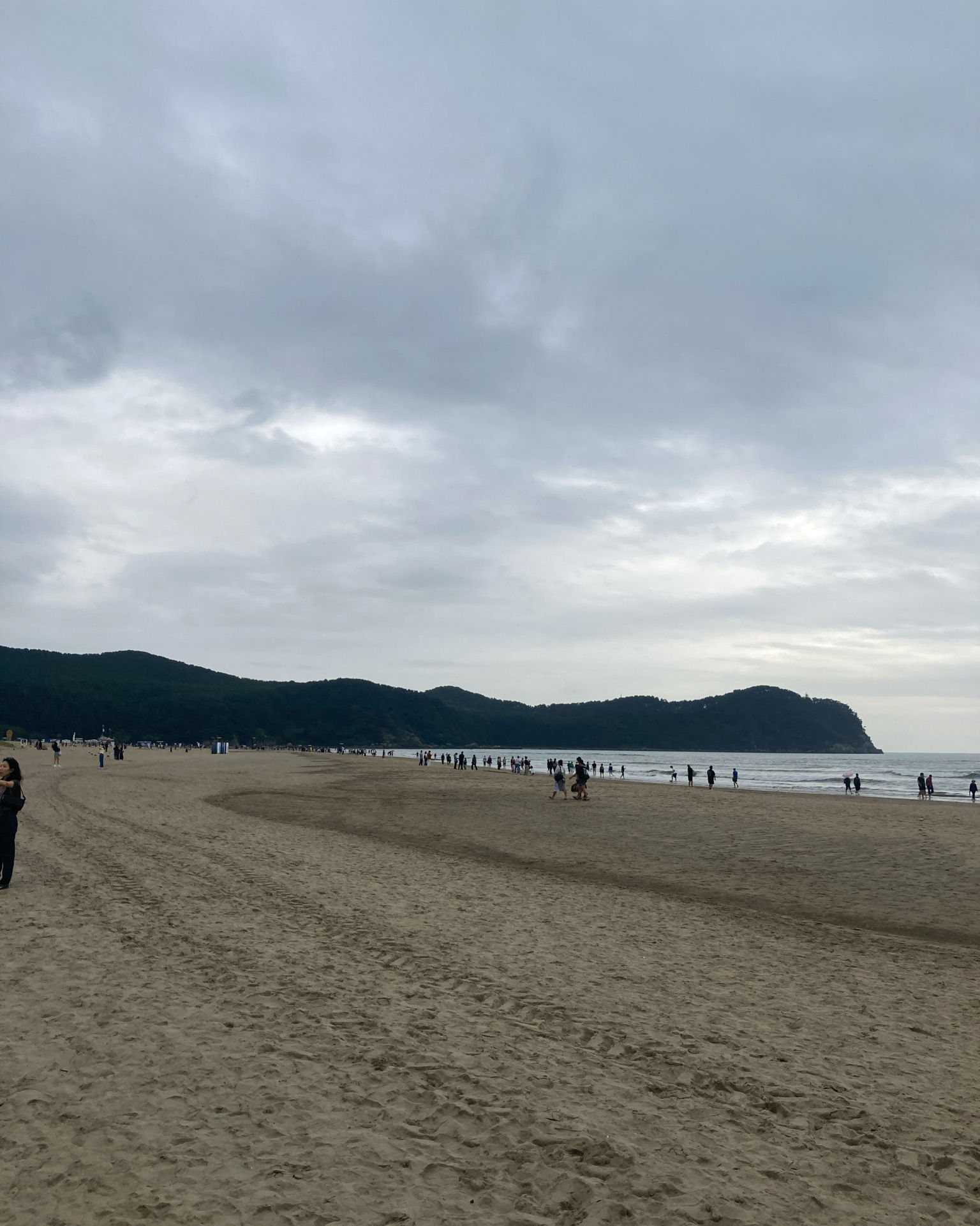호젓하고 백사장 모래가 너무 부드러워요. 발만 담그고 산책하기 참 좋았어요. 비 온 뒤에 개여서 바다 풍경이 더 멋졌네요.