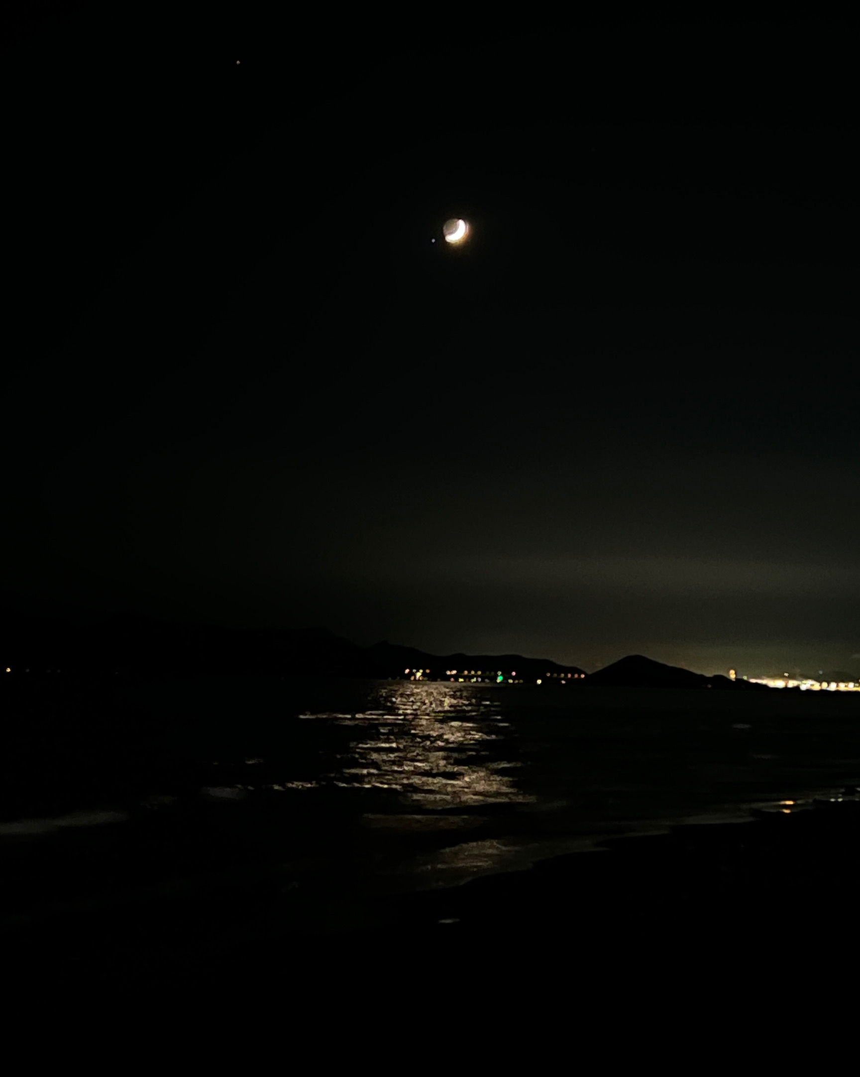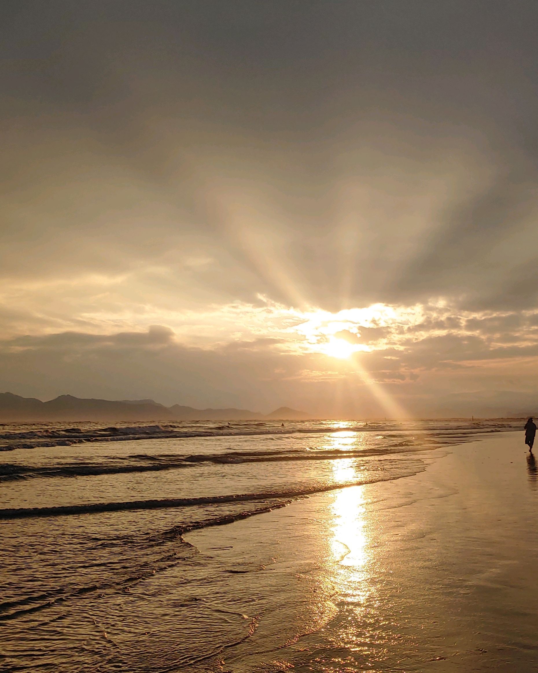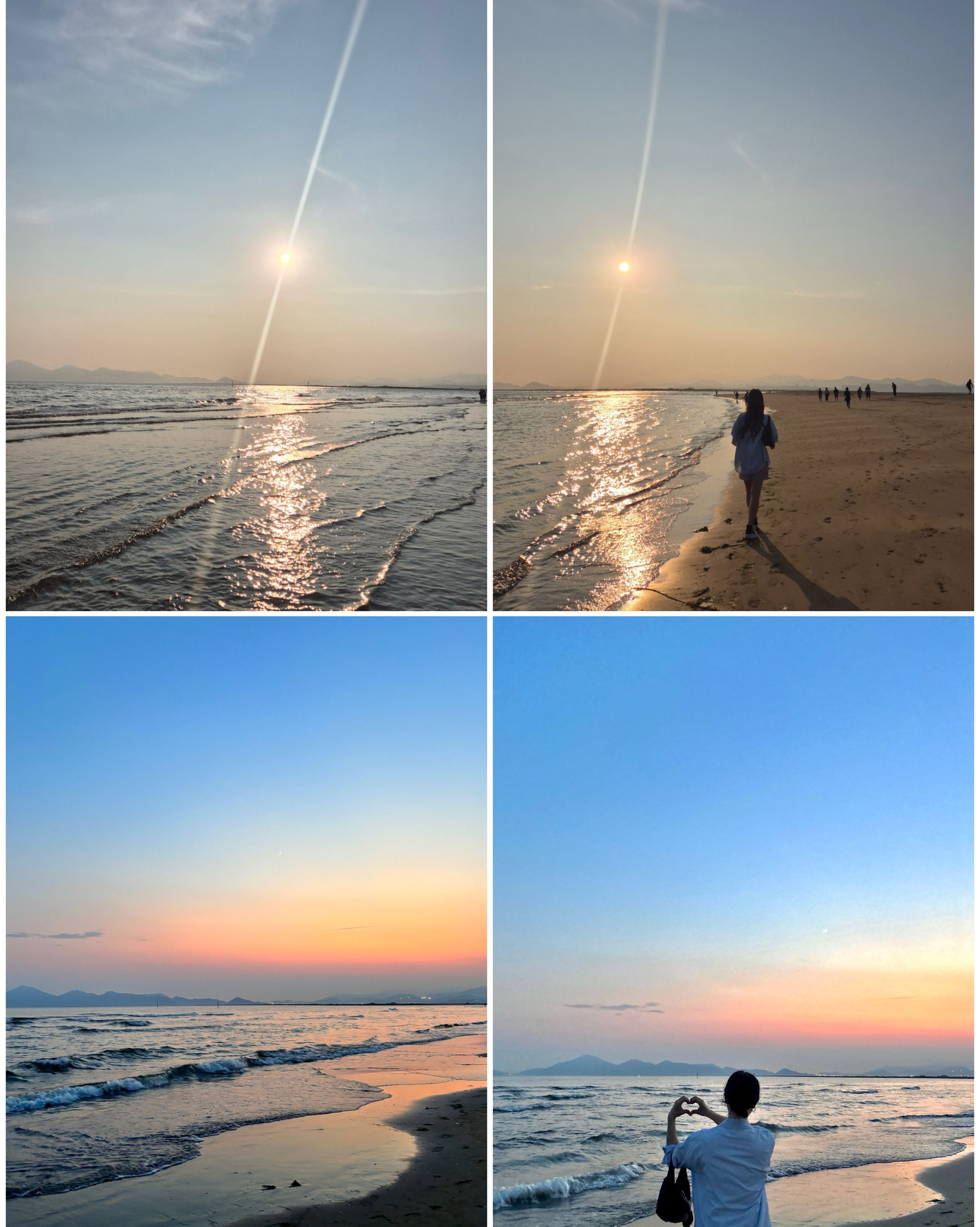 다대포 해수욕장에 18시50분쯤 도착했는데 해가 지기 시작했어요.
