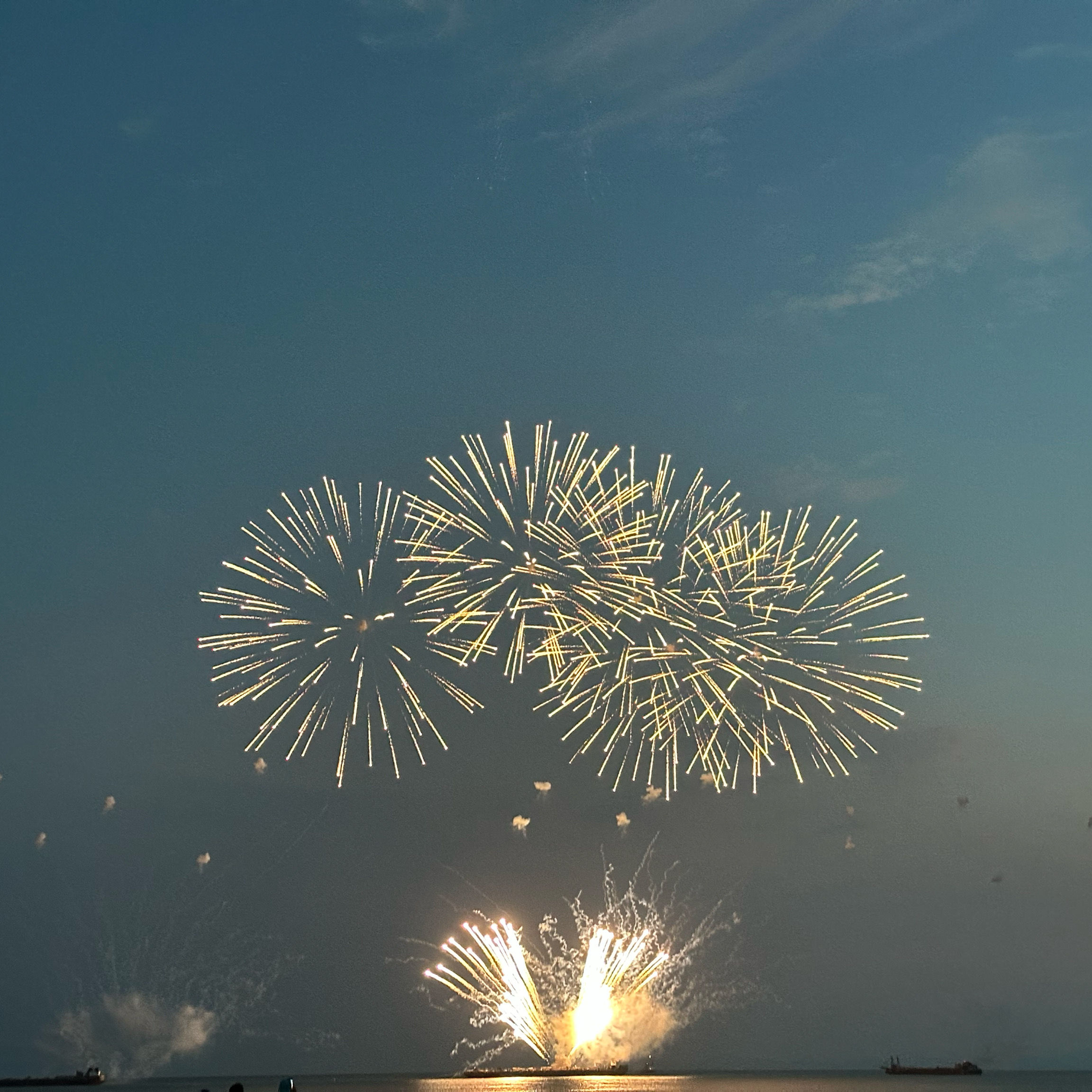 매년 8월1일 마다 다대포 해수욕장에서 불꽃 축제를 한다고 해서 올해는 참석했는데 불꽃이 아주 장관이였어요 너무 웅장하고 멋있어서 보는 내내 눈을 떼지 못했습니다 사람이 너무 많고 외국인들도 너무 많아서 시끄러워 영상에 목소리가 많이 들어가긴 했는데 눈으로만 보시면 좋을것 같아요 각종 부스에 먹거리도 많았는데 저희는 아이들이 있다보니 그냥 왔는데 생맥주 부터 치킨 닭강정 닭발 타코야키 등등 뭐가 많더라고요 그런데 일회용기를 사용하지 않고 다회용기를 사용하는 점에서 눈길이 갔어요 환경까지 생각한 행사구나 하는 점에서 바다에서 하는 행사에 이런 배려가 돋보여 마음이 따뜻했어요
