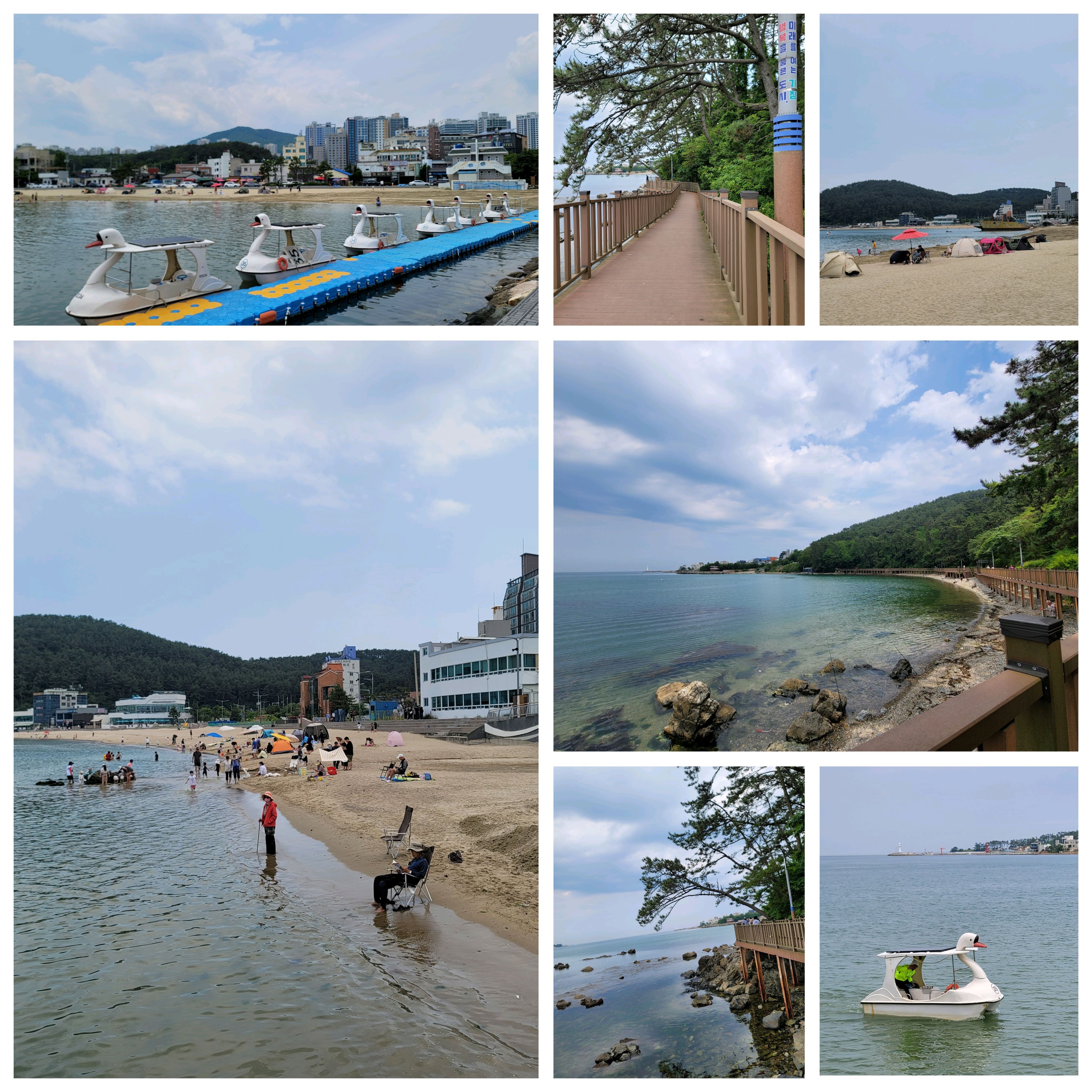 숙소가 근처라 아이들 물놀이겸해서 방문. 피서철 주말이라 많은 인파가 몰리더군요. 덕분에 여름 첫 해수욕장 분위기 즐기고 즐거운시간 보내고 왔습니다. 부산쪽은 주차가 힘들더군요.