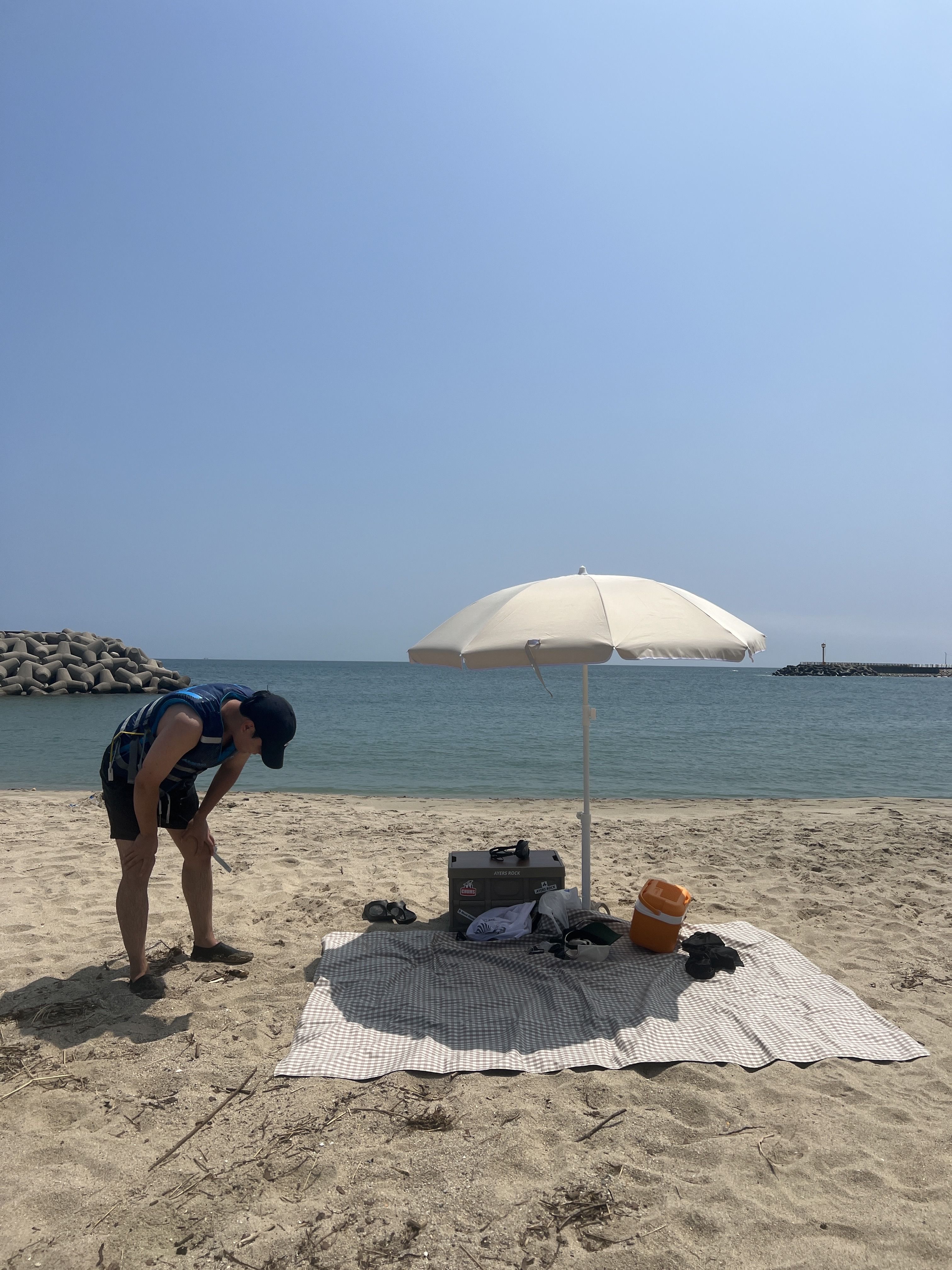 봉평해수욕장 인근 조그마한 백사장이 펼쳐진 곳에서 피크닉. 어딜 가든 해수욕장은 붐비지만, 거기서 조금만 떨어진 곳에 가면 한적해지는 게 울진 바다의 장점 아닐까 싶습니다. 굳이 튜브 타고 놀지 않아도, 텐트 안에서 근처 회센터에서 사온 회를 먹고 차 마시며 노는 것 만으로도 만족스러웠어요.
