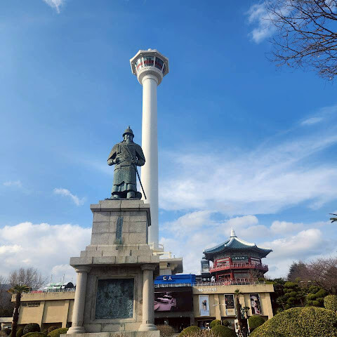 걸어서 올라갈 수도 있고, 롯데백화점에서 에스컬레이터를 이용할 수도 있습니다. 정상에는 한국 해군 이순신 장군의 동상과 유명한 부산타워가 있습니다.
