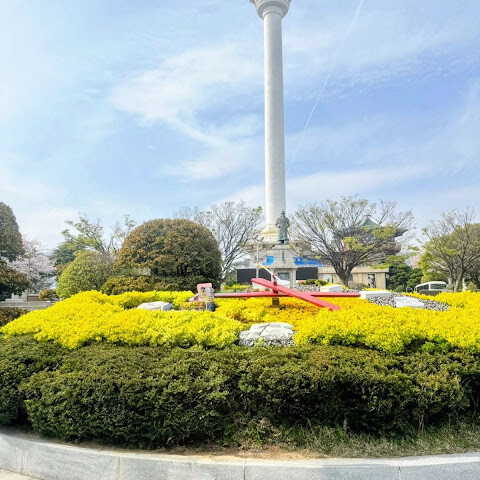 용두산 공원은 광복가와 연결되어 있어 두 곳 모두 방문할 수 있습니다. 정상까지는 4층 높이의 엘리베이터가 있지만, 내려올 때는 계단을 이용해야 합니다. 공원 규모가 꽤 커서 여유롭게 산책할 수 있습니다. 또한, "나도 여기 왔었어"라는 추억을 남길 수 있는 사진 부스도 마련되어 있습니다. QR 코드를 스캔하여 사진을 다운로드할 수 있으며, 테두리와 날짜가 표시되어 더욱 특별한 추억을 만들 수 있습니다.