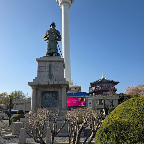 걸어서 올라갈 수도 있고, 롯데백화점에서 에스컬레이터를 이용할 수도 있습니다. 정상에는 한국 해군 이순신 장군의 동상과 유명한 부산타워가 있습니다.