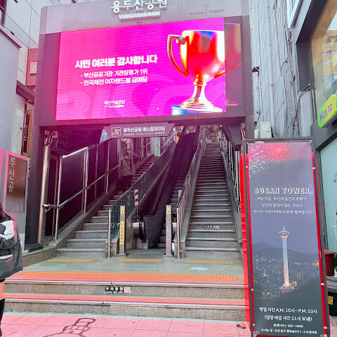 제가 중학교 때 완공된 용두산타워는 당시 부산의 랜드마크였지만, 지금은 추억의 장소라고 할 수 있습니다. 남포동으로 이어지는 에스컬레이터가 있어 어르신들도 편리하게 방문할 수 있습니다.