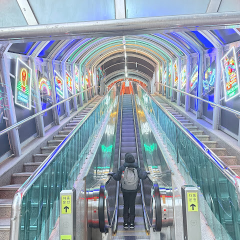 긴 에스컬레이터를 올라갑니다♪