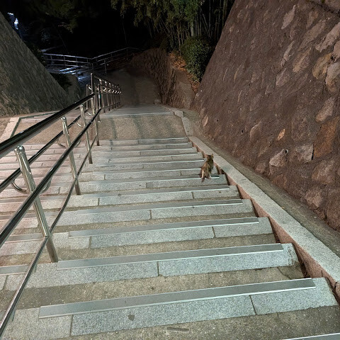 전망을 즐긴 후 시모야마는 포장된 길과 계단을 이용하게 됩니다. 이 고저차가 공원의 비일상적인 공간과 지상의 활기찬 시장과 상가(남포동)와의 신축성을 낳고 있습니다. 체력에 자신이 없는 분은 내리막길을 미리 확인하거나 휴식공간의 벤치에서 충분히 휴식을 취하고 나서, 도시의 잡단으로 돌아가는 것을 추천합니다.