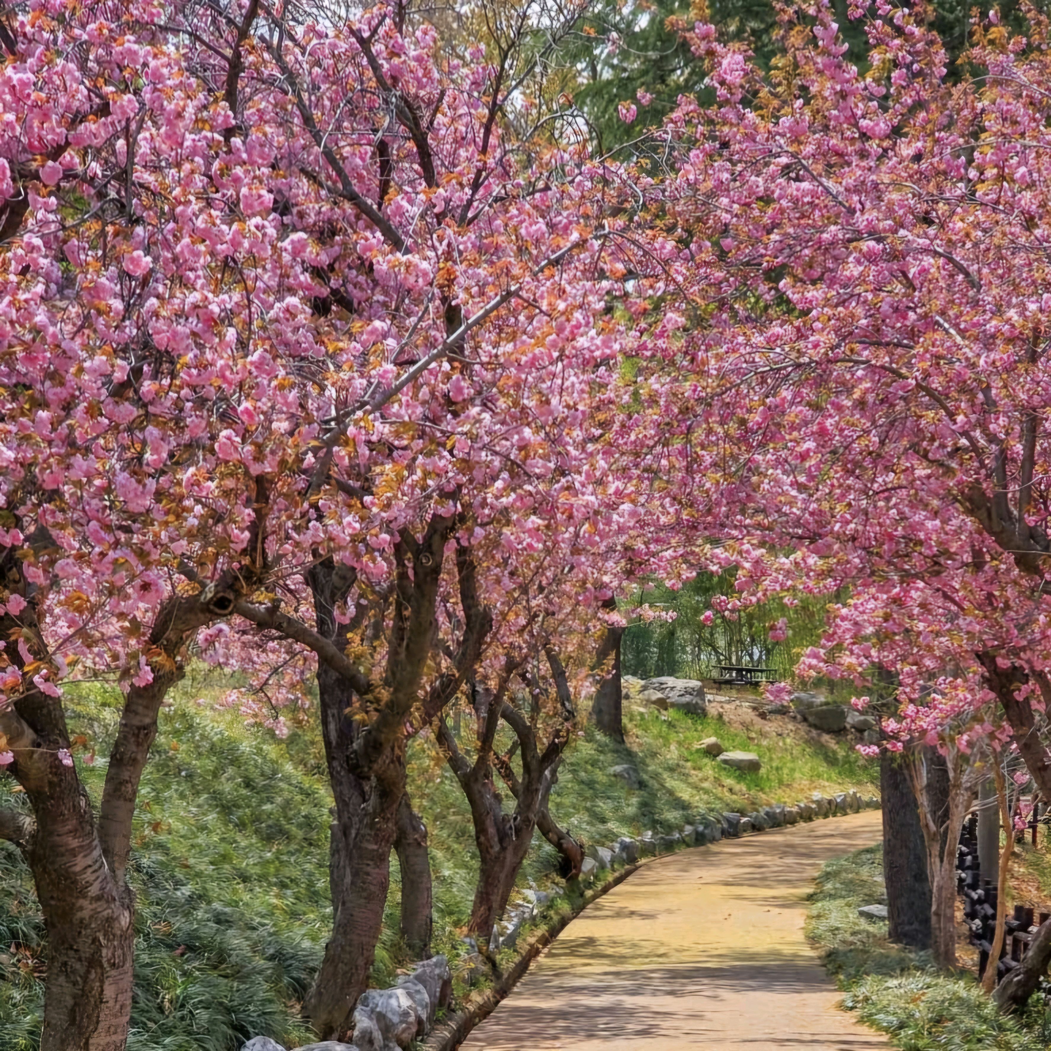 화원유웑지 겹벚꽃보러 4월 16일 방문했습니다. 약초원쪽은 겹벚꽃터널, 초화원쪽은 핑크, 보라, 하양 겹벚꽃 피어있었어요. 만개후 살짝 지고 있었지만 보기 좋았어요.