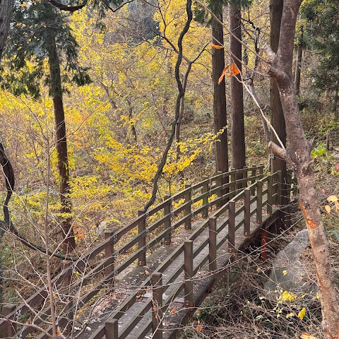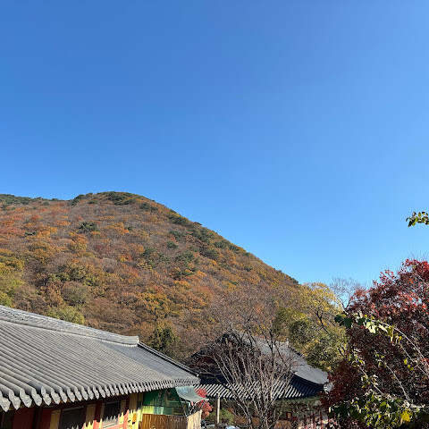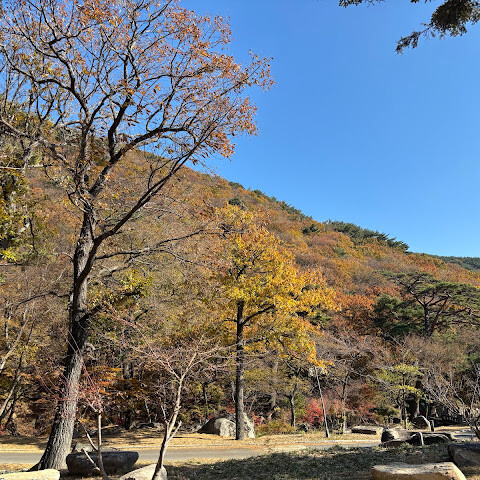 강력 추천합니다! 아이들과 함께 가기에도 좋아요. 경사가 너무 가파르지 않아서 걷기도 편하고, 단풍도 정말 아름다워요. 지하철을 타고 범묘사역에서 내려 90번 버스를 타고 산으로 올라갔어요.