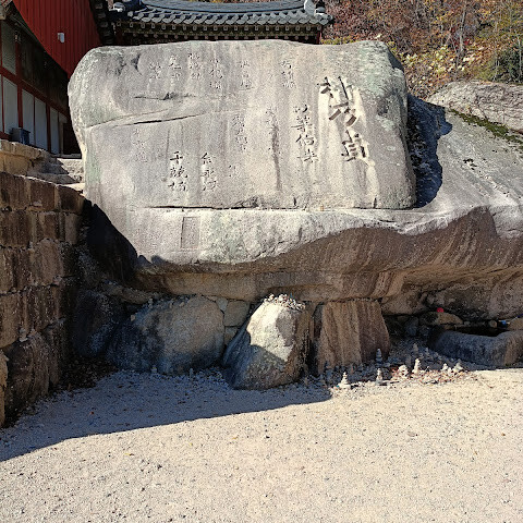 경내 주차장에 차를 대면 일주문까지 나있는 돌길을 못걸을지도 몰라요. 하지만 도착 직전 편의점 옆에 있는 유료 주차장에 속지 말고 좀더 올라오세요.