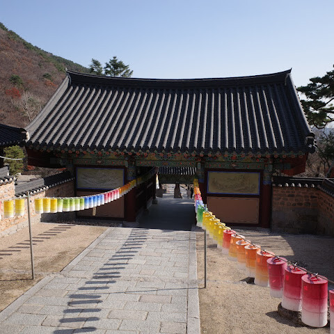 부산 북쪽 금정산 기슭에 위치한 범어사는 7세기 후반에 창건되었으며 선불교의 중심지였습니다. 범어사는 수많은 사적을 간직하고 있으며, 그중 대웅전과 삼층석탑은 국보로 지정되어 있습니다. 원래 36개의 건물이 있는 큰 사찰이었던 범어사는 임진왜란 때 안타깝게도 소실되었습니다. 1717년에 재건되었는데, 특히 대웅전은 정교하고 웅장하여 조선 시대 건축의 정수로 손꼽힙니다. 현재도 7개의 전각, 2개의 누각, 3개의 큰 문, 11개의 암자, 삼층석탑을 비롯한 많은 사적들이 남아 있습니다. 일주문: 범어사에 들어서면 가장 먼저 눈에 띄는 것은 일주문으로, 속세와 성지를 분리하기 위한 배치입니다. 한국의 산속에 있는 많은 사찰 중에서도 일주문은 꼭 봐야 할 곳으로, 특히 중요문화재 제1461호로 지정된 돌기둥이 인상적입니다. 생동감 넘치는 황토색(전통적인 한국식 다색) 나무와 웅장한 돌기둥의 대조가 일주문을 더욱 매혹적으로 만듭니다. 돌계단을 따라 올라가면 사찰의 중심부인 대웅전에 도착하게 됩니다. 범어사 대웅전의 주요 불상은 석가모니불로, 중요문화재 제434호로 지정되어 있습니다. 대웅전 맞은편 오른쪽에는 2겹의 기단 위에 지어진 3층 석탑이 있는데, 이는 통일신라 후기의 석탑 양식을 보여주는 전형적인 예입니다. 중요문화재 제250호로 지정되어 있으며, 9세기경 창건된 것으로 추정되며 오랜 역사를 자랑합니다. 범어사의 고요한 경내는 편백나무, 소나무 등 침엽수와 대나무 숲으로 가득 차 고요하고 평화로운 분위기를 자아냅니다. 범어사에서는 많은 신도들이 통과하는 문마다 경건하게 기도를 올리는 모습을 흔히 볼 수 있는데, 이는 참으로 신성한 광경입니다.