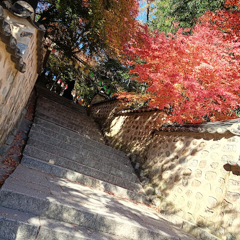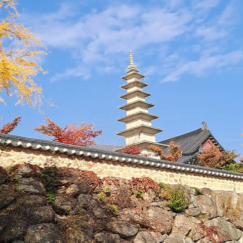 아주 조용하고 아름다운 사찰입니다. 11월 초에는 단풍이 4분의 1 정도만 붉게 물들어 인스타그래머들에게 인기 있는 명소입니다. 규모도 꽤 크고 접근성도 좋습니다. 7번 출구로 나와 오른쪽으로 돌아 약 800m 정도 걸으면 90번 버스 정류장에 도착합니다. 버스는 자주 운행합니다. 사찰 근처에는 상점이 없으니, 올라가기 전에 식사를 하시는 것을 추천합니다.