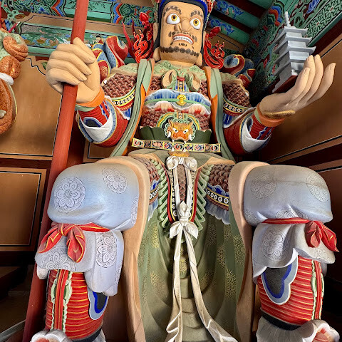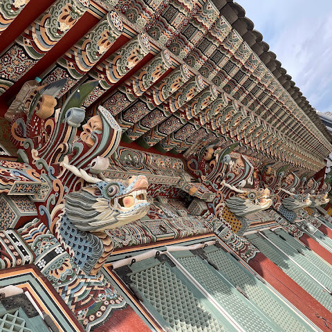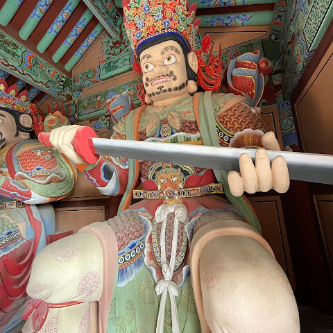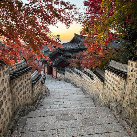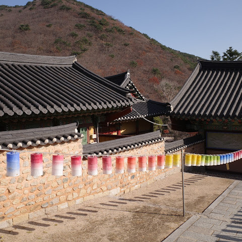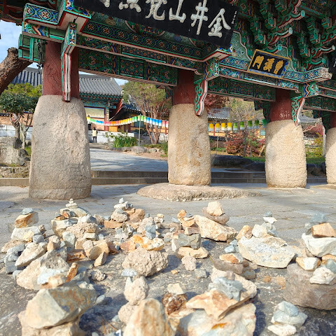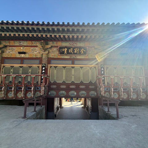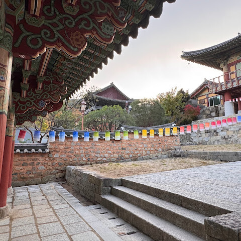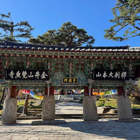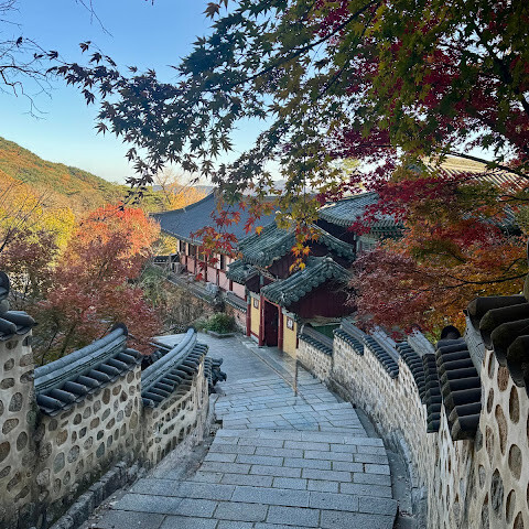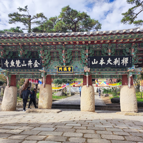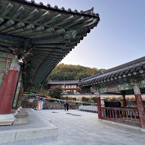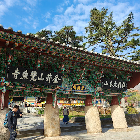 범어사는 계명봉 기슭에 넓은 부지를 차지하고 있습니다. 건축학적으로 다른 한국 불교 사찰보다 두드러지지는 않지만, 규모가 커서 방문할 가치가 있을 것 같습니다. 저희는 신도들이 기도하러 모여들고 일부 구역이 폐쇄되는 이른 아침(오전 8시 30분)에 방문했습니다. 범어사에 가려면 지하철 1호선 노포역(종점)에서 90번 버스를 타는 것을 추천합니다. 노포역 바로 옆에서 타면 사찰 입구까지 바로 내려줍니다.