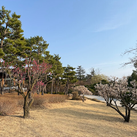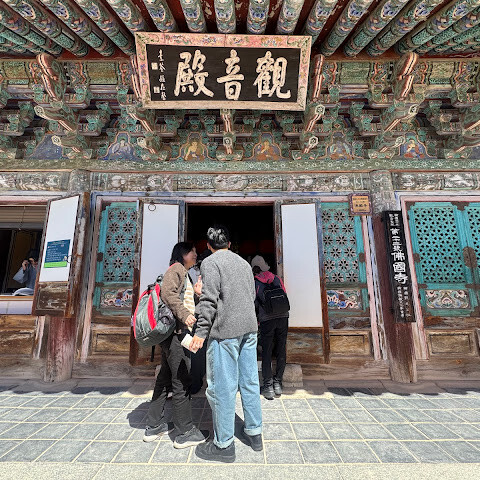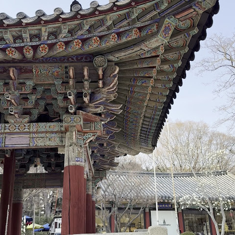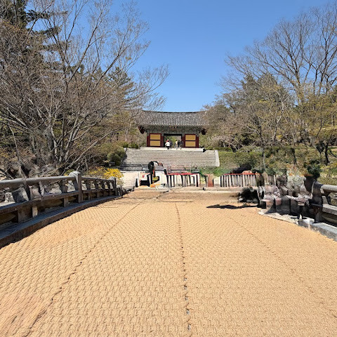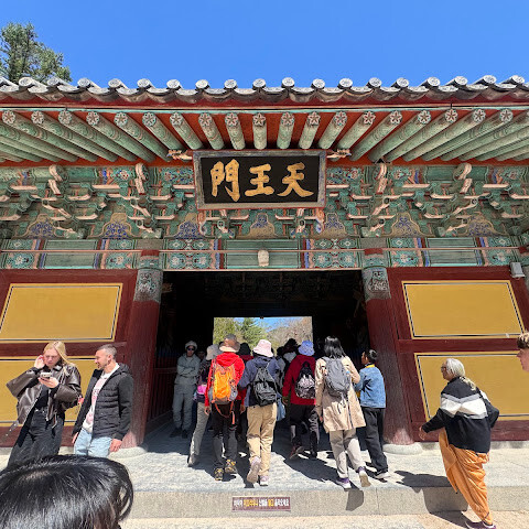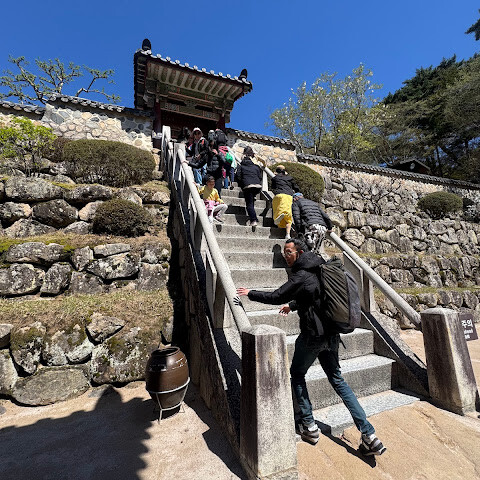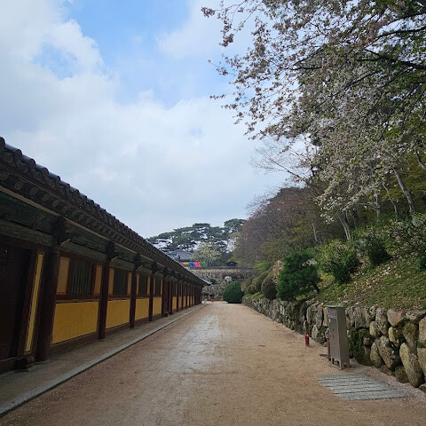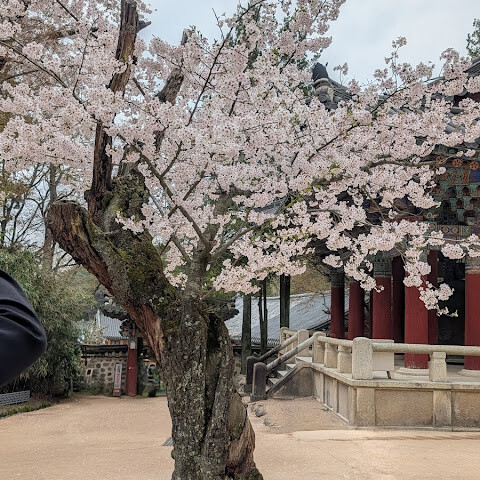 화창한 날씨 덕분에 사찰, 국보 조각, 우뚝 솟은 소나무, 그리고 만개한 벚꽃을 마음껏 즐길 수 있었습니다!
