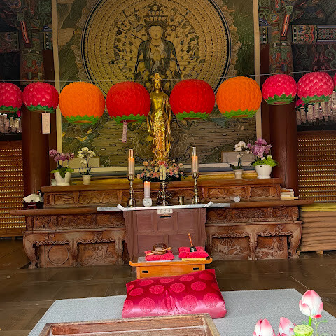 이 지역에서 꼭 방문해야 할 곳! 고요한 분위기를 만끽할 수 있었고, 운 좋게도 스님들이 산책하는 모습을 볼 수 있었습니다. 아쉽게도 기도 시간은 놓쳤지만요.