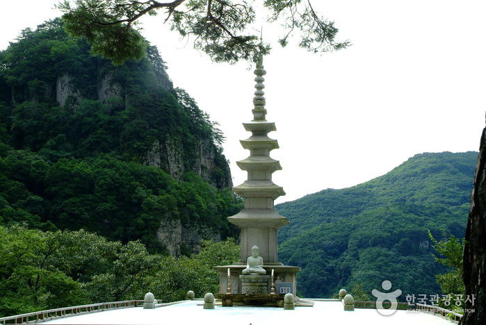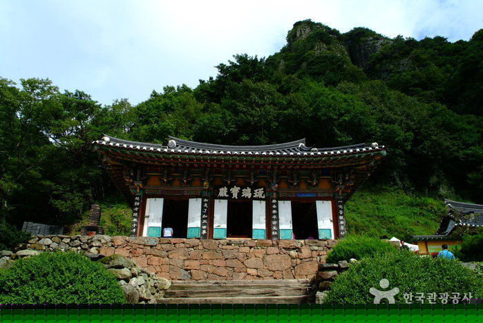 이 청량사에는 진귀한 보물 2개가 남아있다. 공민왕의 친필로 쓴 현판 유리보전(琉璃寶殿)과 지불이다. 유리보전은 약사여래불을 모신 곳이라는 뜻이다. 지불은 종이로 만든 부처이나 지금은 금칠을 했다. 청량사 바로 뒤에는 청량산이 한눈에 들어오는 보살봉이 있다. 원래 이름은 탁필봉이지만 주세붕선생이 지형을 보고 봉우리 이름을 다시 지었다고 한다. 청량사가 내청량이라면 응진전은 외청량이다. 응진전은 원효대사가 머물렀던 청량사의 암자로 663년에 세워진 곳으로 청량산에서 가장 경관이 뛰어난 곳에 든다. 입석에서 등산로를 따라 30분정도 오르면 만난다. 뒤로는 거대한 금탑봉이 병풍처럼 둘러서 있고, 아래로는 아득한 낭떠러지이다. 바위가 마치 9층으로 이뤄진 금탑모양을 하고 있고 층마다 소나무들이 테를 두른듯 암벽에 뿌리를 내리고 있다. 가을이면 절벽 아래로 붉게 타는 단풍이 장관이다. * 주요문화재 - 응진전, 5층사리탑, 김생굴, 청량정사