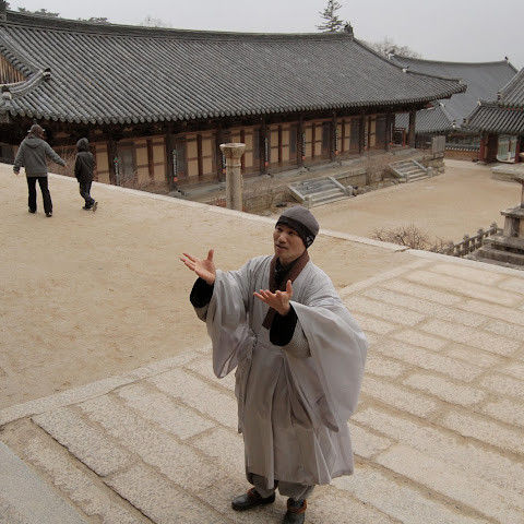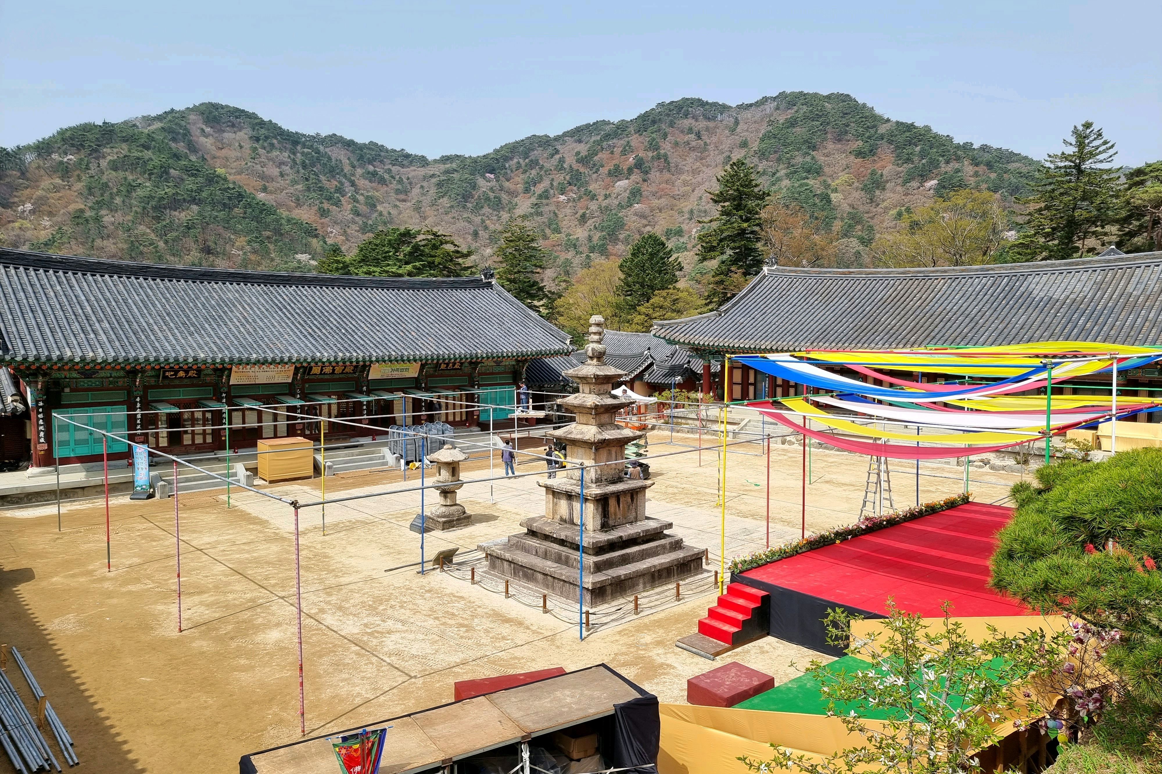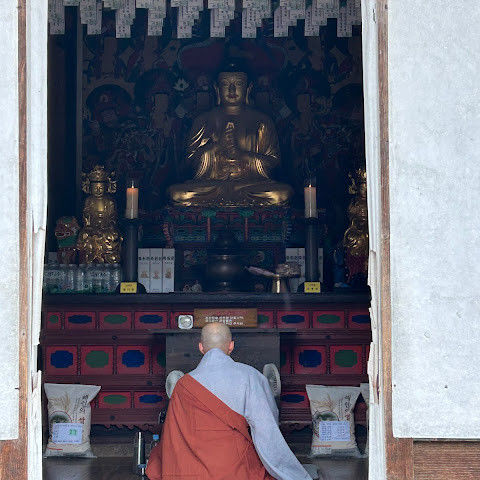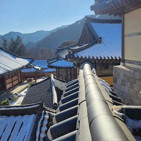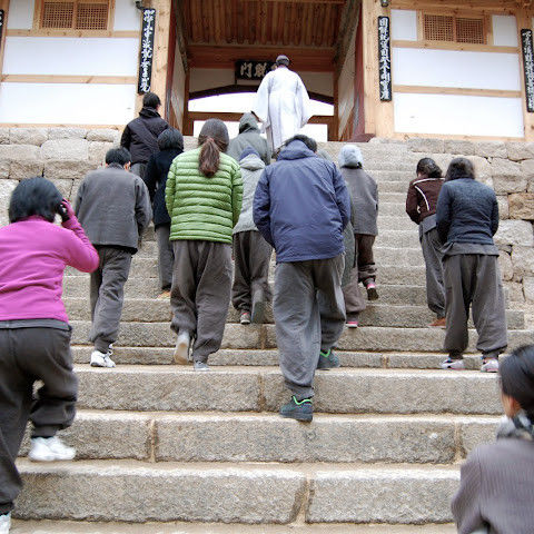 제가 "템플스테이"를 했던 곳이 바로 이곳입니다. 프로그램에 등록하면 정해진 절차를 따라야 합니다. 수도원에서의 첫 24시간은 처음에는 느리게 지나가는 것처럼 보일지 모르지만, 곧 정말 빠르게 지나갑니다. 승려의 하루는 새벽 3시 30분, 장엄한 종소리와 함께 시작됩니다. 참배객들은 아침 의식을 위해 본당에 모입니다. 고동치는 법고 소리가 울려 퍼져 평화로운 산봉우리마저 깨웁니다. 오전 6시 사찰 음식 전에는 108배와 한 시간의 명상이 있습니다. 오전 10시에는 기도, 정오 12시에는 점심, 오후 5시에는 저녁, 오후 6시에는 야간 의식이 있습니다. 나머지 시간은 산 뒤편을 산책하거나, 선(禪) 명상을 하거나, 승려들과 대화를 나누며 보낼 수 있습니다. 다른 참가자들과 함께 저는 승려와의 다과회에 초대되었습니다. 그는 "사찰에서 불교에 대한 지적인 지식보다는 지혜와 삶의 지혜를 배우기를 바랍니다."라고 말했습니다.