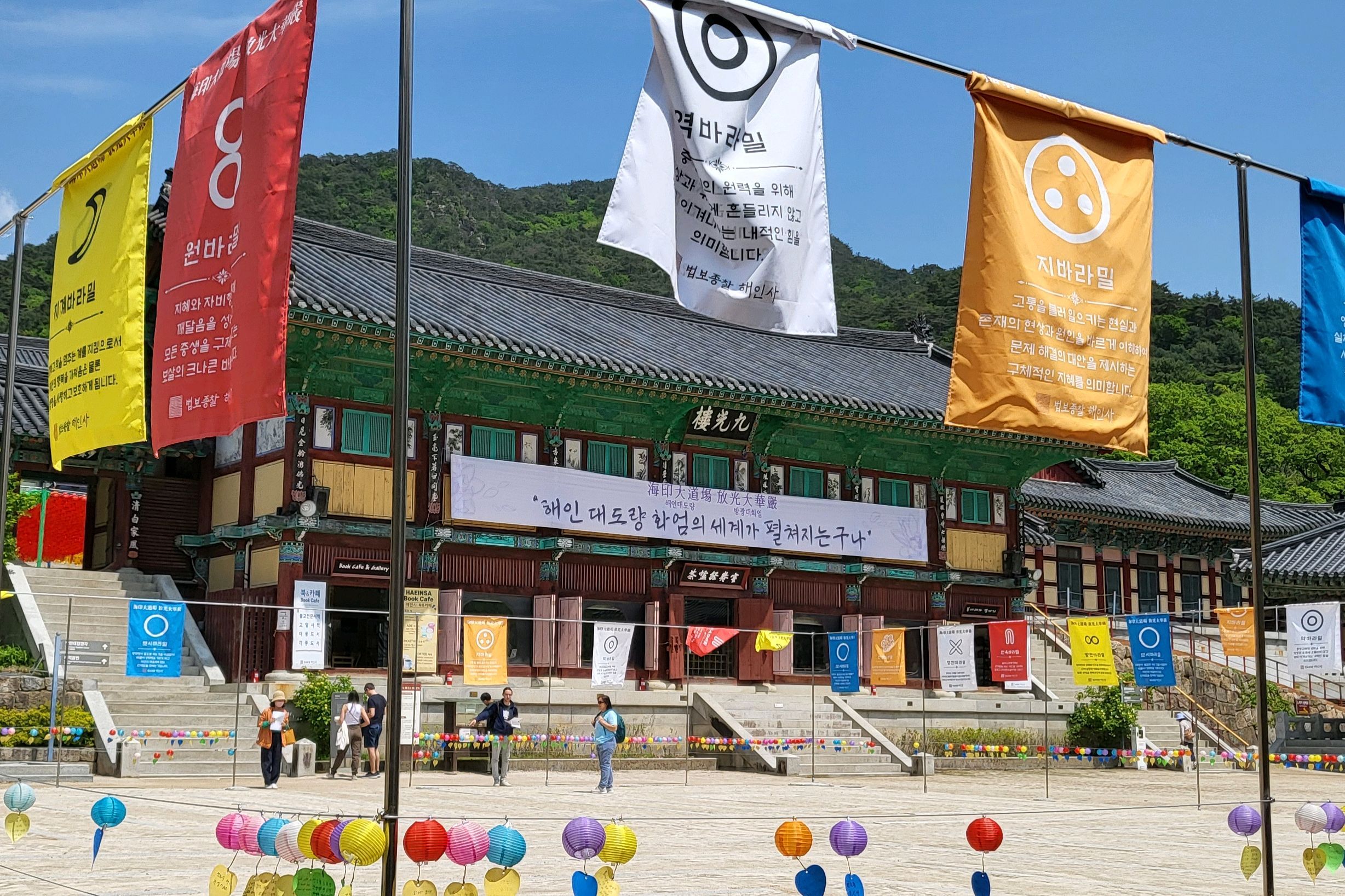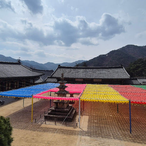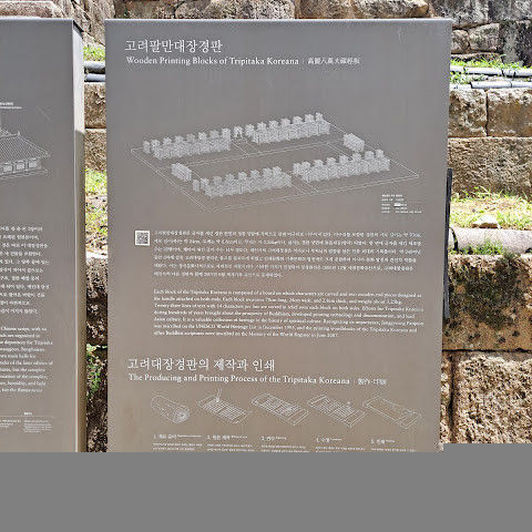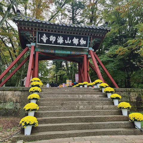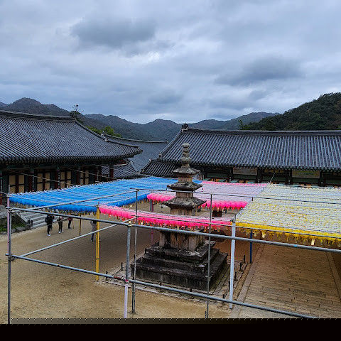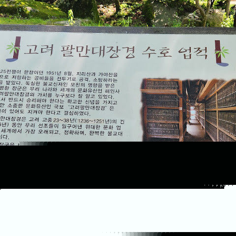 아름다운 불교 사찰입니다. 한국에서 매우 중요한 사찰입니다. 다행히 한국전쟁 당시 폭격을 받지 않았습니다. 유엔군이 이 지역을 사용하고 있다는 의심이 들어 북한 조종사에게 사찰을 폭격하라는 명령이 내려졌지만, 다행히 조종사는 이 신성한 사찰의 중요성을 알고 있었고, 사찰 외곽을 따라 기관총 사격만 했을 뿐 사찰에 큰 피해를 입히지는 않았지만, 폭격했다고 보고했습니다. 사찰 경내 한쪽에는 강이 흐르고 있습니다. 대장경도 사찰 경내에 있습니다. 이 유명한 대장경에 대한 정보는 대장경을 방문하는 것이 가장 좋습니다.