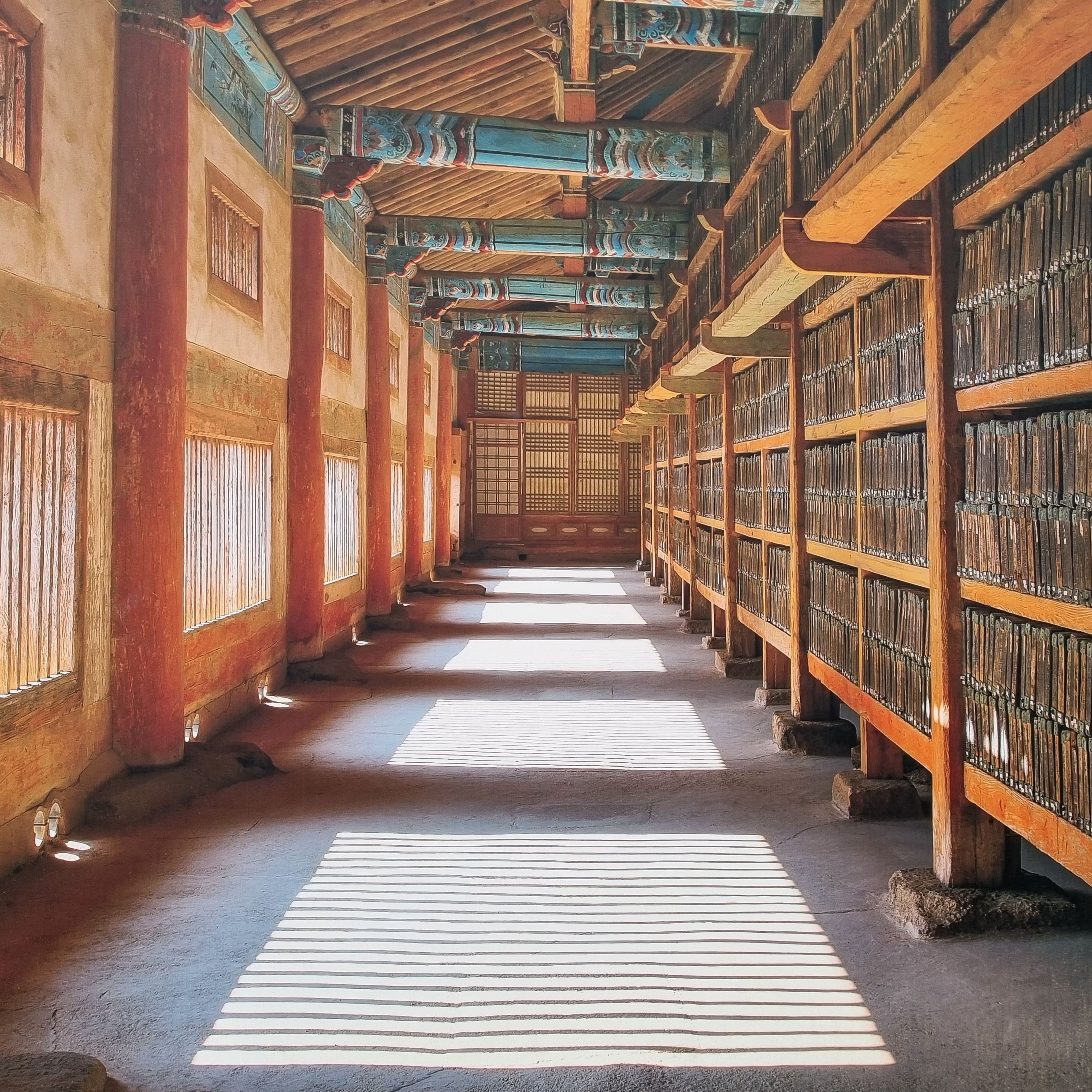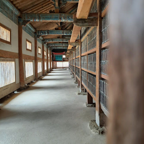 고려대장경을 지키는 사찰. 책을 가까이서 볼 수 없다는 게 아쉽다. 그들은 나무 문을 통해서만 조금 볼 수 있습니다.
