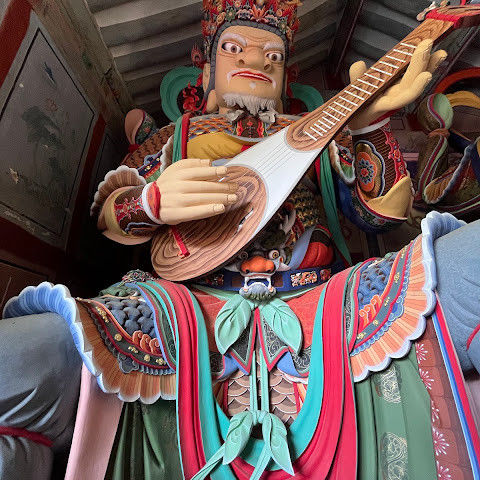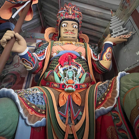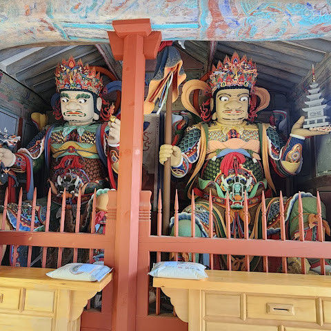 이 사찰까지는 짧은 오르막길이 있습니다. 다행히 저희가 갔을 때는 아침 예불이 진행되고 있었고, 불경을 외우고 스님들이 북을 치고, 두 대의 전투기가 우리 머리 위로 공중전(플레어 포함)을 시연하는 모습도 볼 수 있었습니다.