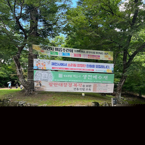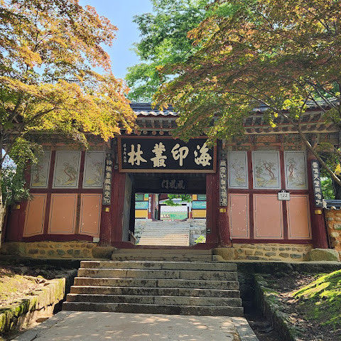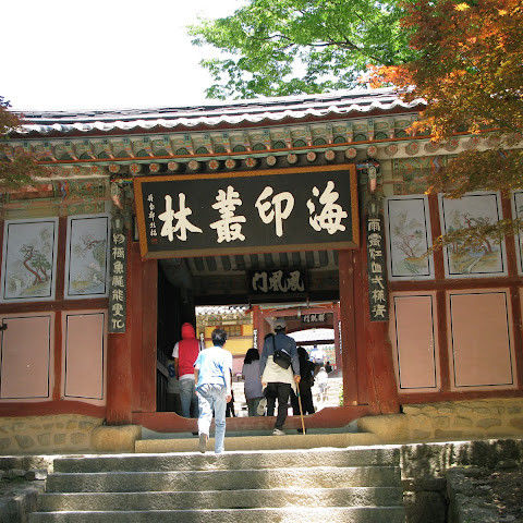 팔만대장경이소장되어있는가야산에자리잡은우리나라유명한사찰,단풍과계곡물이참좋은곳.암자도아주많은곳.나는방장스님이신성철스님도뵙던적이있슴.