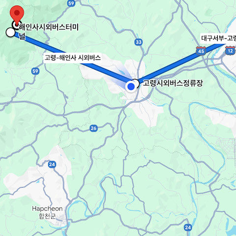 참고 - 해인사까지는 서부 버스 정류장에서 카드로 버스 요금을 결제할 수 있지만, 돌아오는 길에는 카드 결제가 불가능합니다. 돌아오는 길은 버스에서 현금으로만 결제할 수 있습니다.