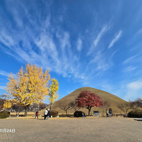 KKDAY 경주 당일치기 여행을 예약했는데, 세 번째 목적지는 대릉원(천마총)이었습니다. 이 언덕들은 고대 무덤으로, 천마총 방만 유료로 입장할 수 있고 나머지 지역은 입장할 수 없습니다. 하지만 광활하고 독특한 주변 지역을 탐험해 볼 수 있습니다!