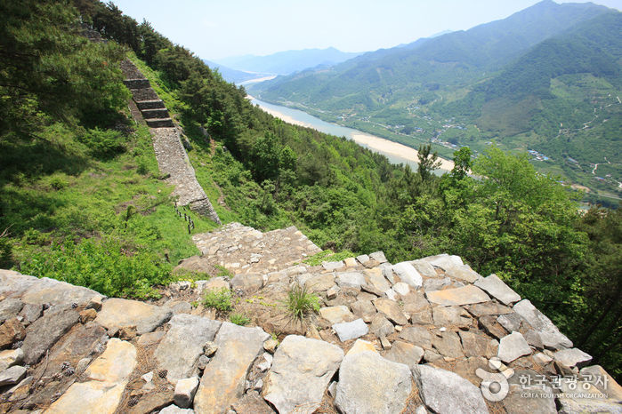 성벽은 네모나게 다듬은 돌과 자연석을 사용하여 둘레 약 800m, 높이 3.5m~4.5m로 견고하게 쌓았다. 산성의 성벽은 거의 완전하게 남아있으나, 서남쪽 섬진강을 굽어보는 구간은 허물어져 돌무더기만 남아있다. 지리산에서 뻗어 내려온 산줄기의 중턱 300m의 고지에 있으며, 그 단면이 사다리형(저면폭 6m, 상면폭 2m)인데, 가공한 장방형 석재를 써서 견고하게 쌓고, 남북에 두 개의 성문을 설치하였다. |