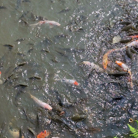 호수에있는 잉어떼들이 사람이있는곳으로 몰려와요~~ㅎㅎ 먹이 주는줄 알고..ㅋ