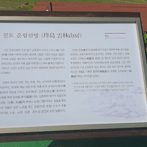 |  진도의 명소로 아주 잘 가꾸어 놓은 경관과 운림산방의 남농 집안 대가들의 동양화가 잘 전시되어있다 2024년 08월 20일 |