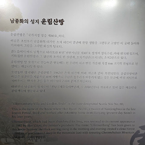 |  진도 여행와서 첨으로 들린곳인데.. 어랏?  기대 이상인걸요??  입장료2천원이 있었지만 그이상의 가치가 있었던 곳!! 소치선생님과 그 후손들의  멋진 그림들도 많고 정원도 넘 이쁘고.. 생각보다 오래 머무르게 되었던 곳!!! 2024년 10월 04일 |