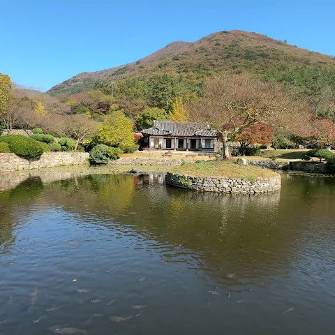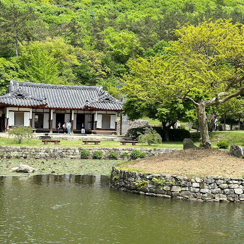 |  참칠산 아래 펼쳐진 고요하고 아름다운 한국의 집과 정원~ 소치 허연이 그림을 그렸다는 화방에 가까이 가니 묵향이 난듯 하여 내심 놀랏다. 산을 배굥을 한 집과 연못이 정말 운치있는 곳. 강추합니다. 2024년 05월 04일 |
