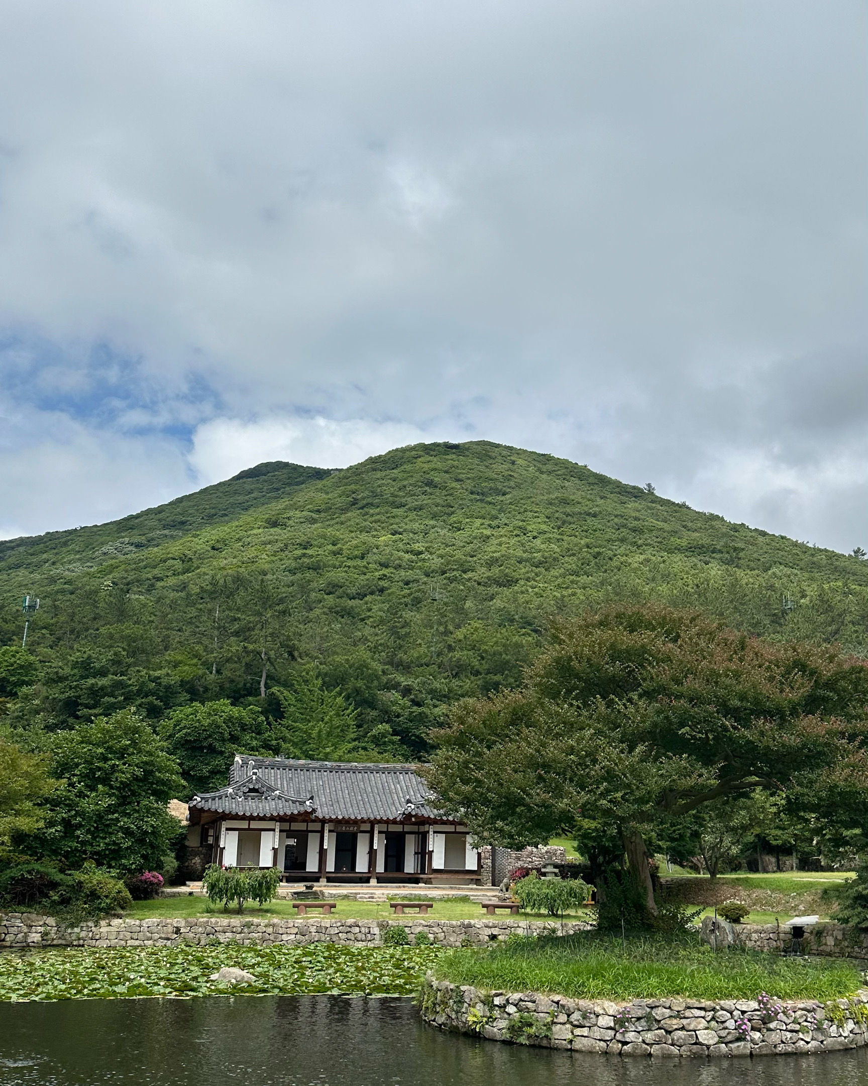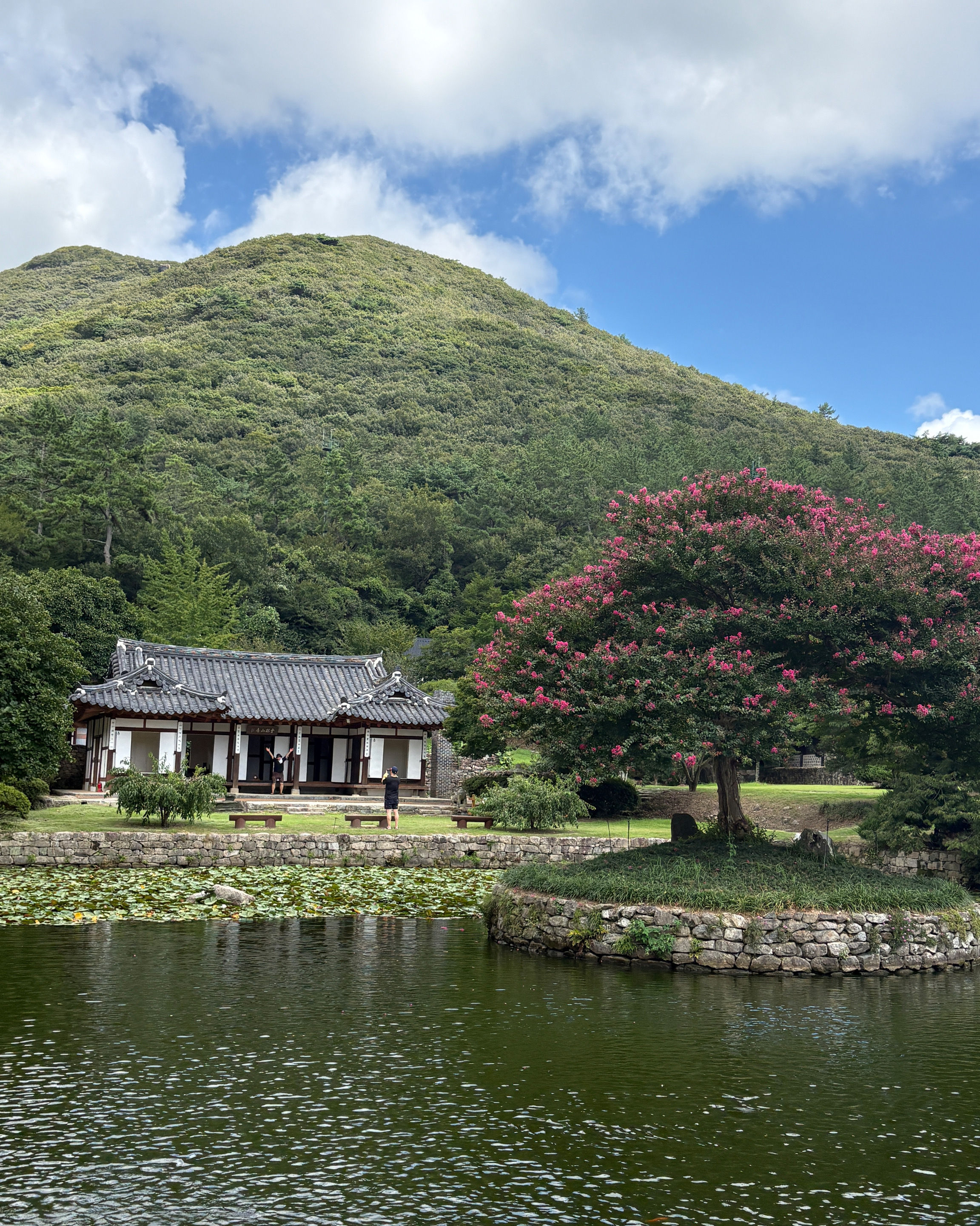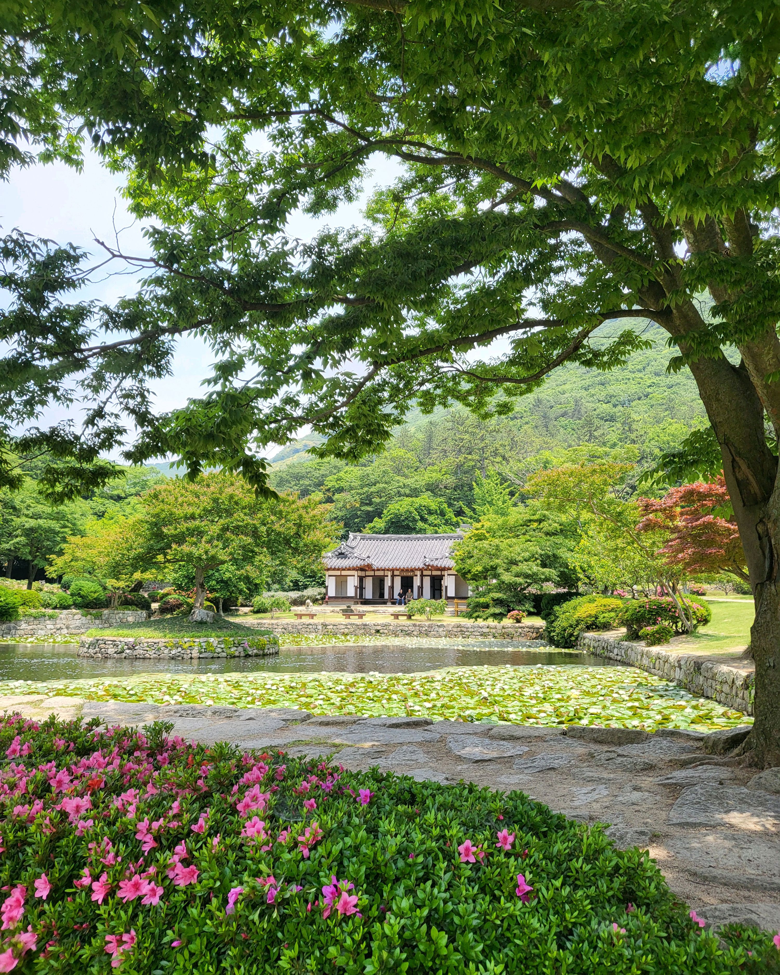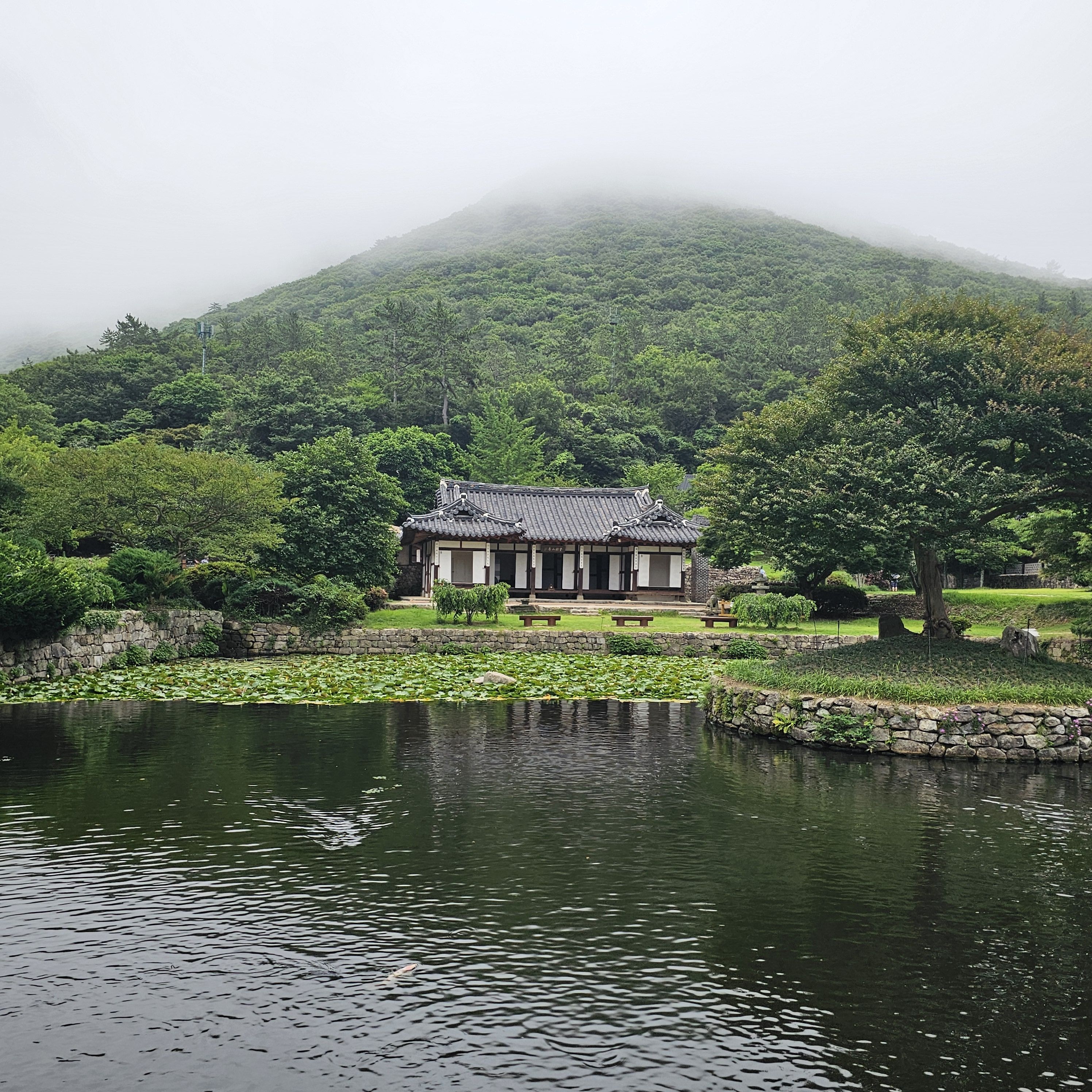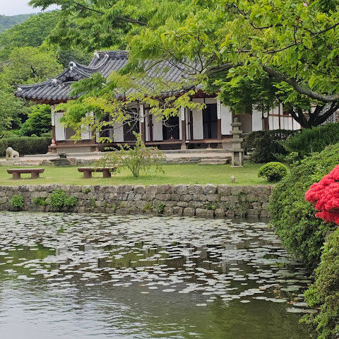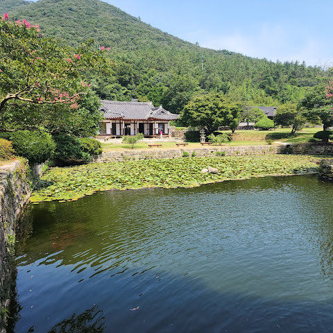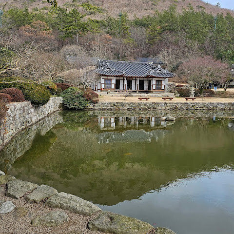 한옥이 앞에 연못하고 잘어울리고
