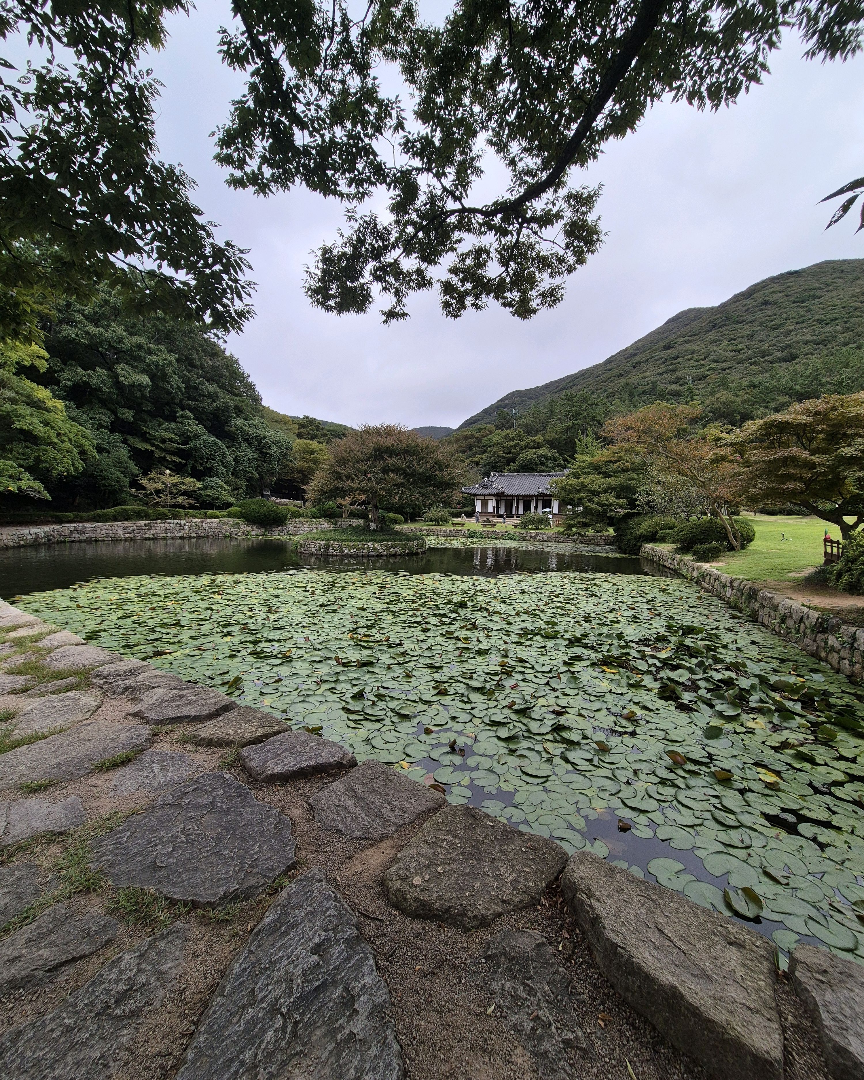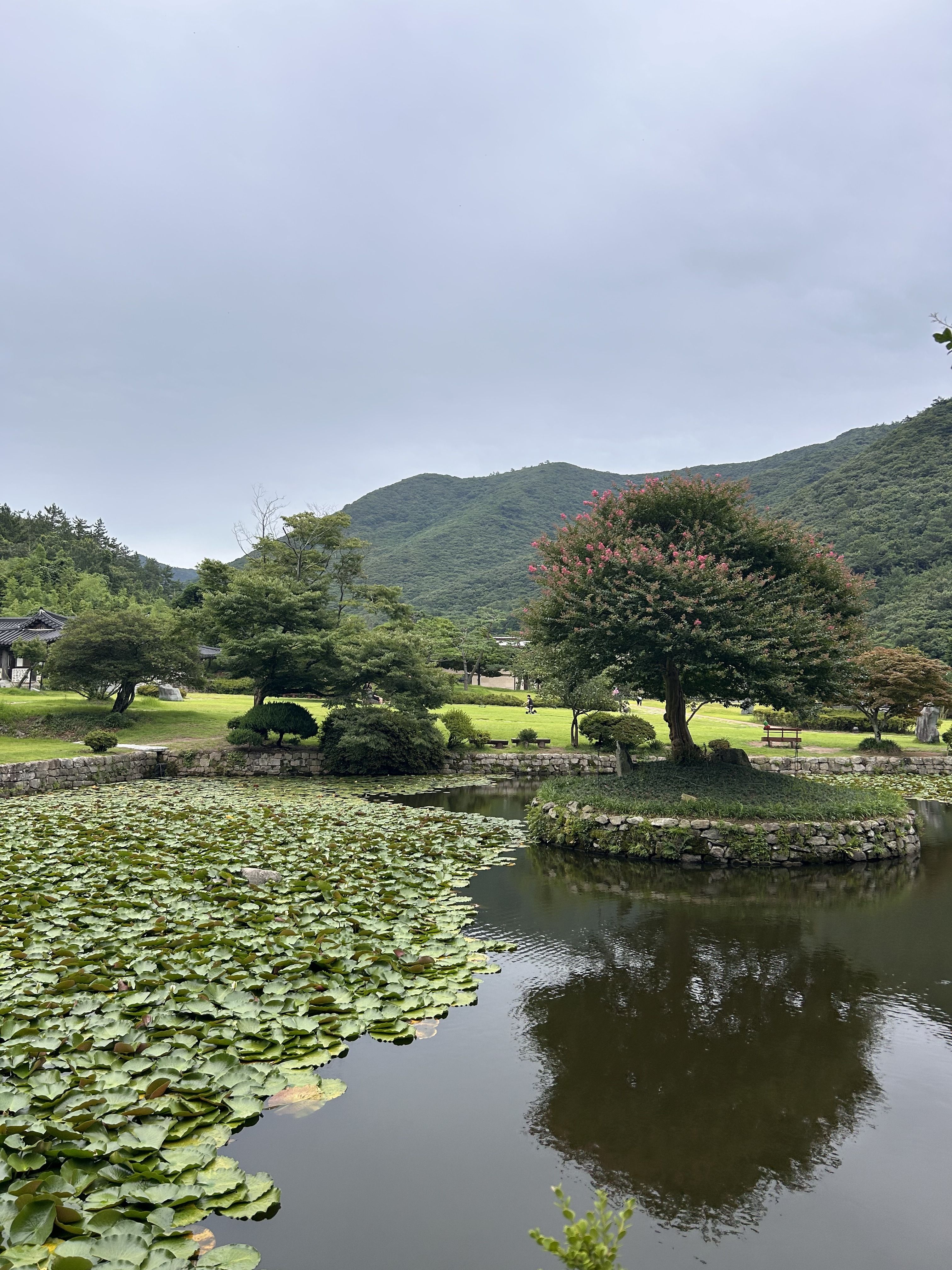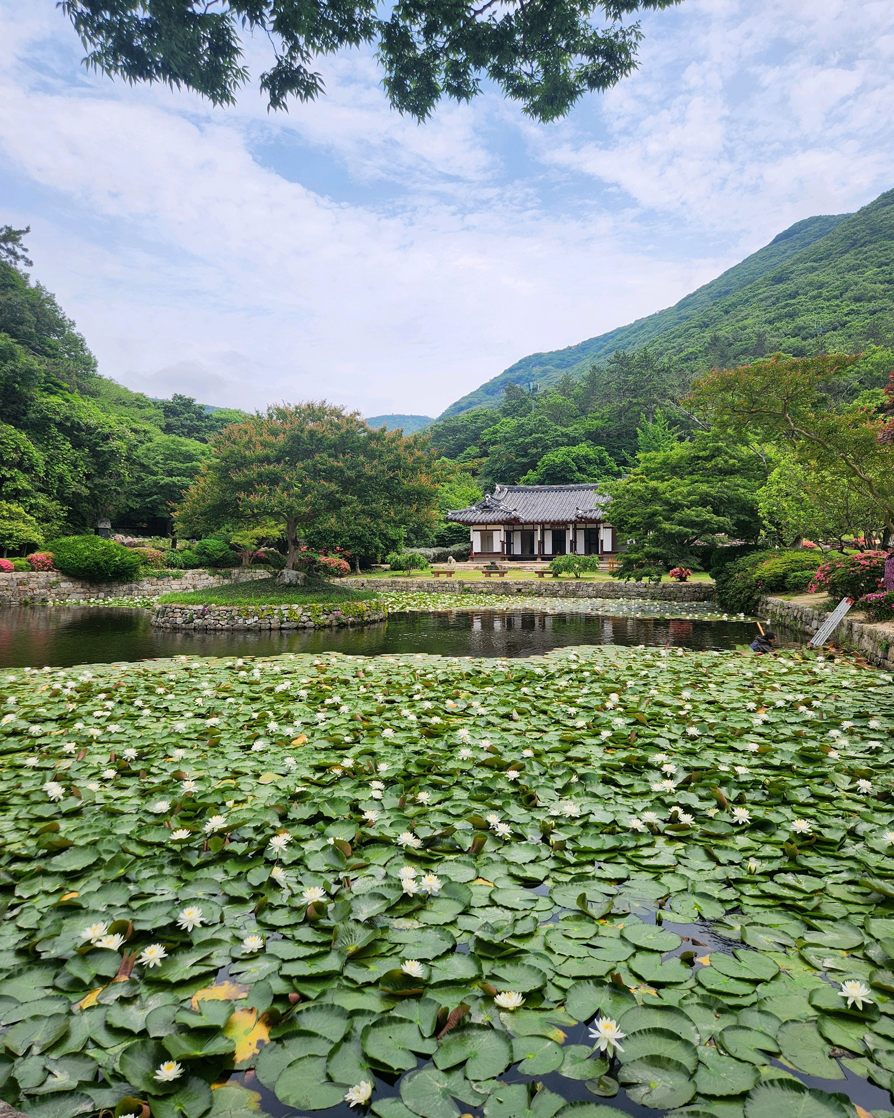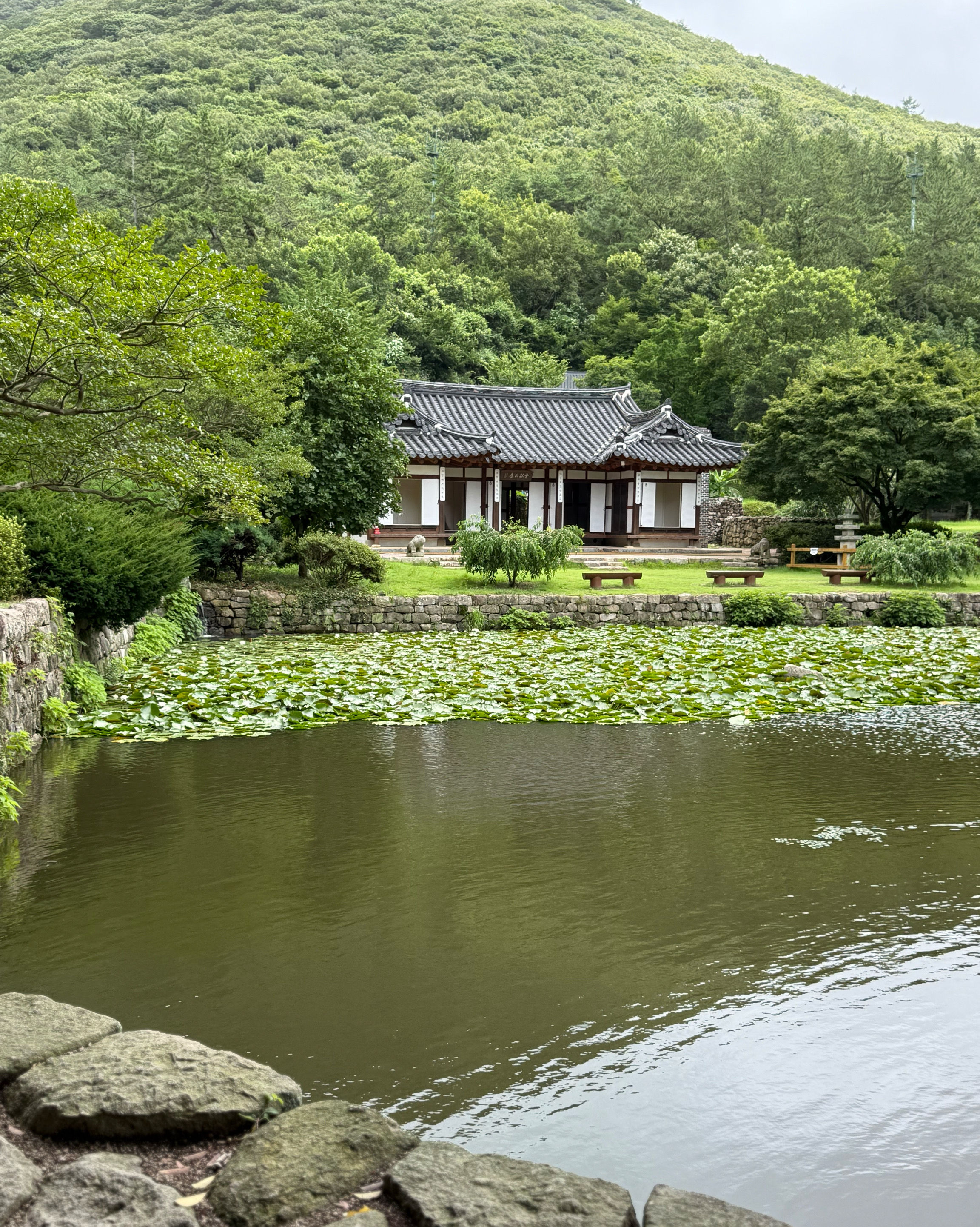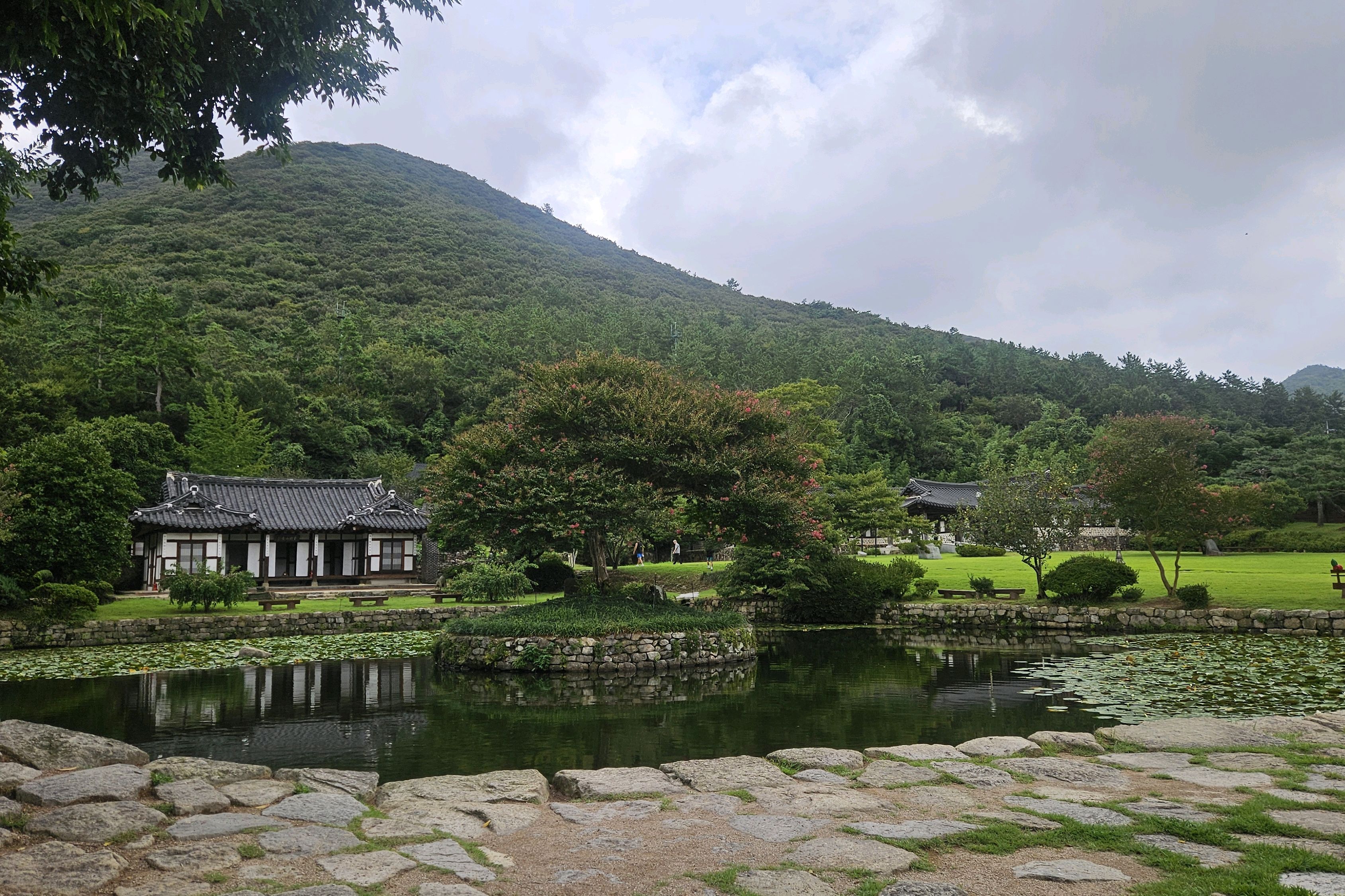 한옥이 앞에 연못하고 잘어울리고