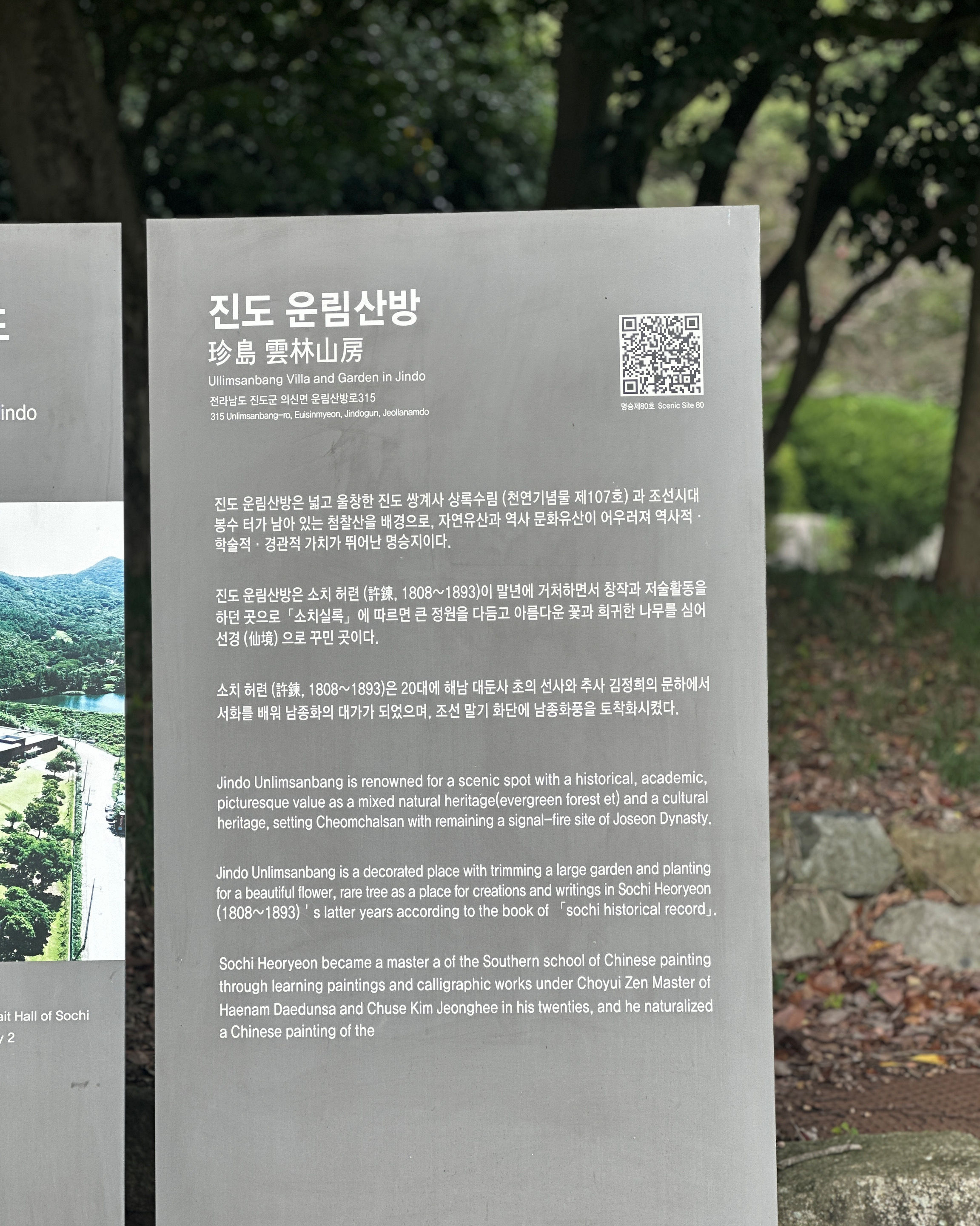 |  진도가 배출한 조선시대 예술가 소치 허림선생의 거주지 였던 곳. 조경이 뛰어나고 전시된 작품들이 많아 미술에 문외한이어도 쉽게 감상할 수 있도록 만들었다. 2024년 05월 15일 |