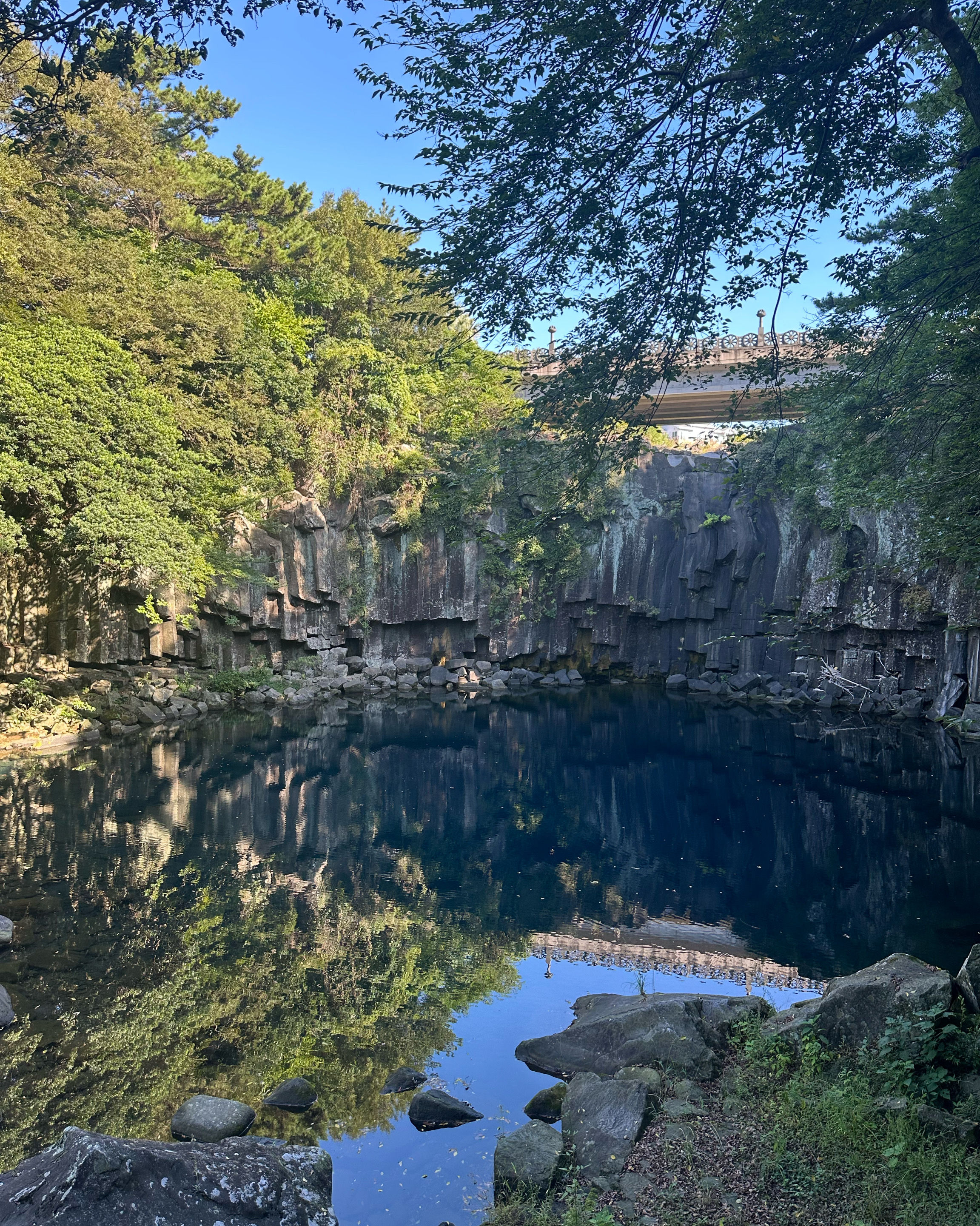 천지연 폭포와 더불어 길목을 따라 있는 골짜기천 역시 물 색이 아름다워 바라보고 있으면 좋습니다. 엄마와 다녀와서 더 좋았습니다.