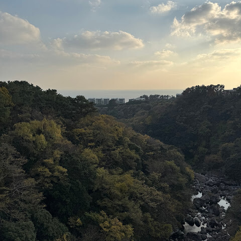 천지연은 공항과 반대방향이라 천제연으로. 1폭포는 비 많이 올 때만 폭포가 형성된다는데 절벽 아래 푸르른 물색깔이 특이하긴 했지만 임팩트는 부족했습니다. 2폭포는 통로 공사 중이라 패스. 3폭포는 10분 정도 가야했는데 규모가 너무 작았고 폭포 포함 주위 볼거리가 부족했습니다. 날 더워 땀만 가득. 함양 안의면 용추폭포에도 훨씬 미치지 못했고 외국인들이 많이 보러 왔는데 다들 전혀 임팩트를 느끼지 못하는 것 같았습니다. 여미지식물원으로 연결되는 다리는 중국풍? 비추하고 싶은 곳입니다.