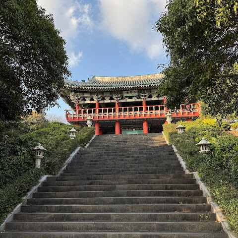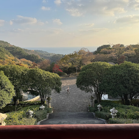 여미지 식물원 근처 입구는 정말 좋은 선택이었어요. 전통 한국식 정자가 있어서 바다 풍경(정말 아름다웠어요)과 상쾌한 바람 덕분에 계속 돌아다녔어요.